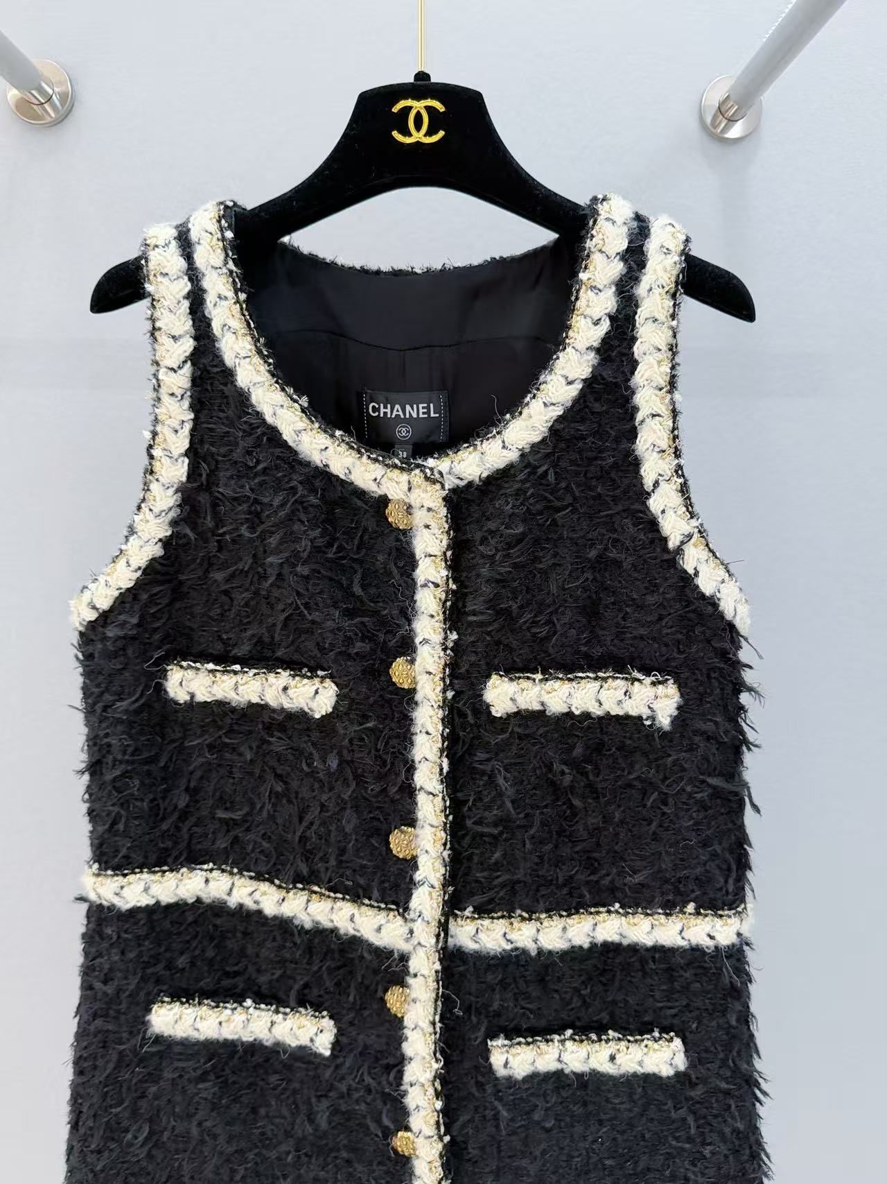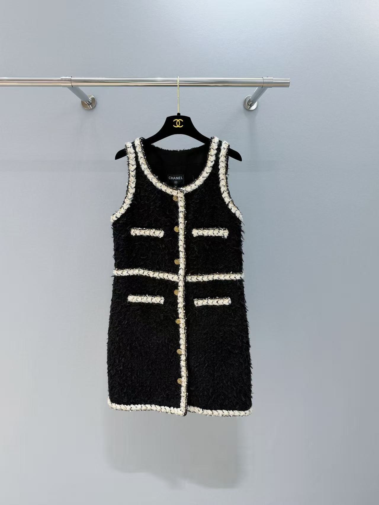 2025秋冬 C家 25K黑色粗花呢無袖連衣裙