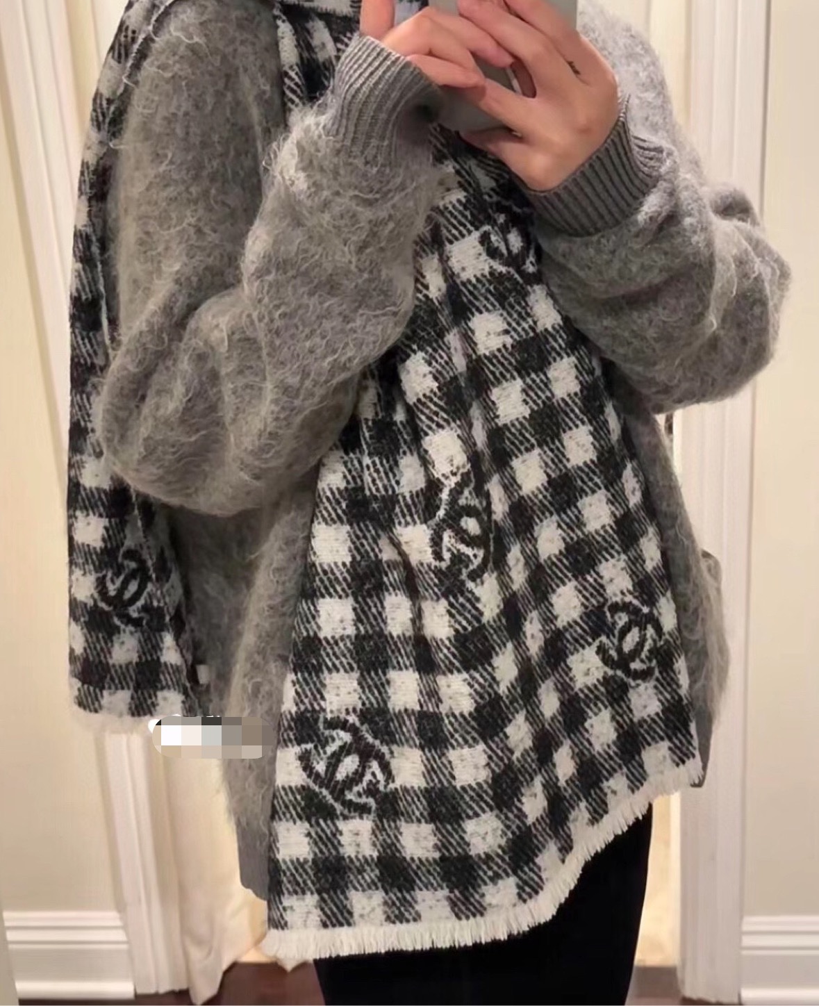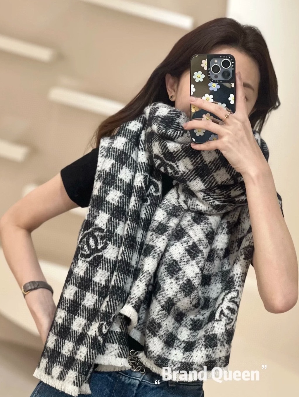 這條黑白格紋圍巾簡直就是秋冬穿搭救星!
