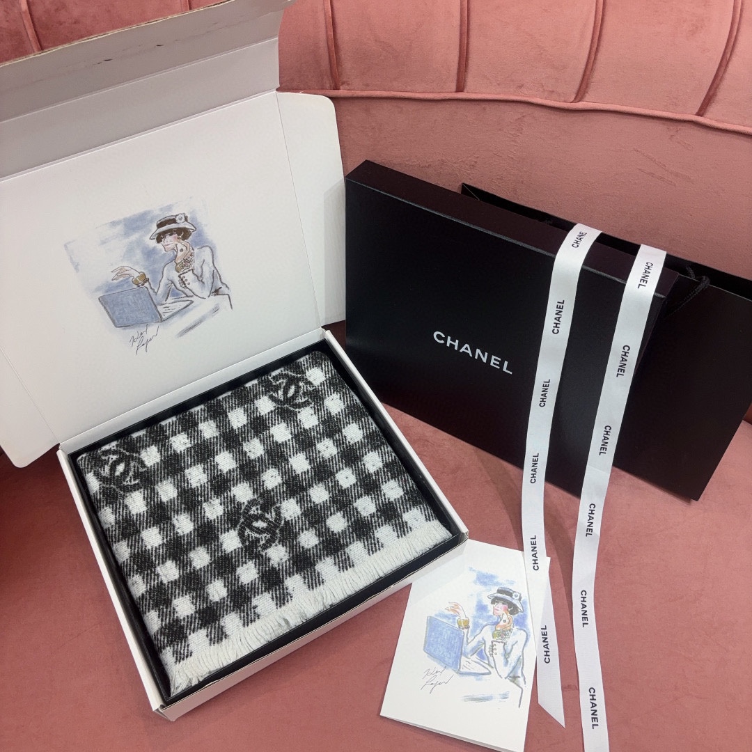 2024秋冬新品 C家黑白格紋圍巾
