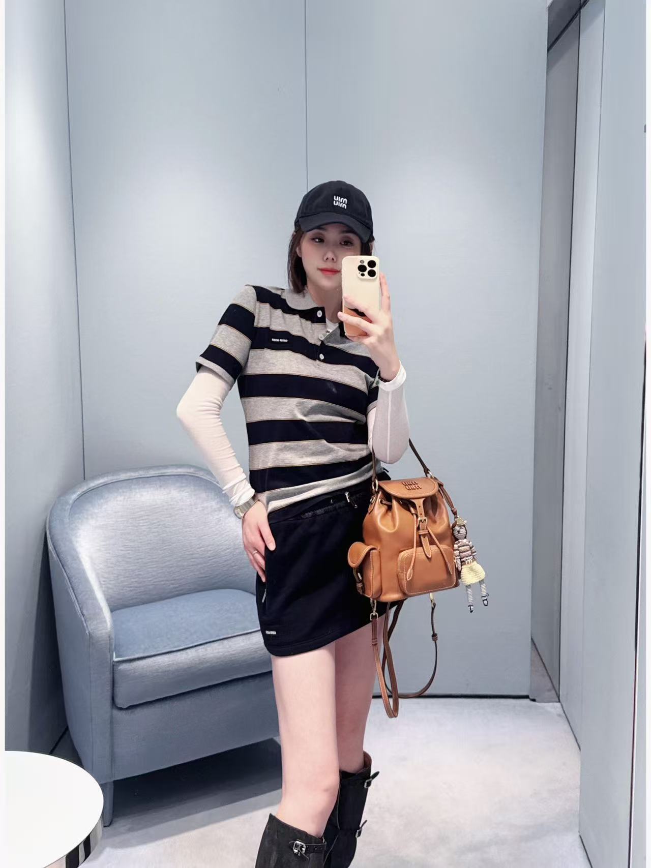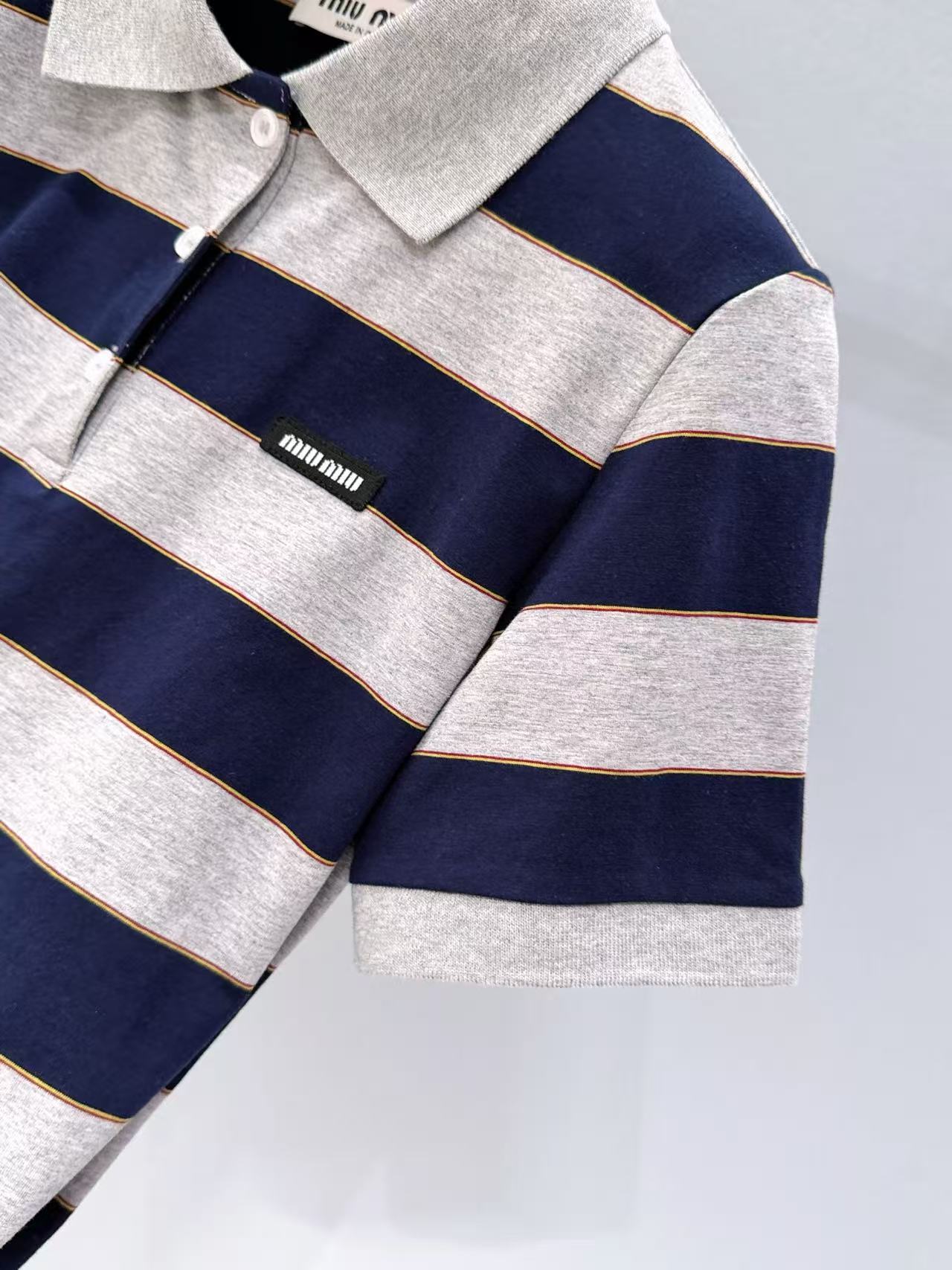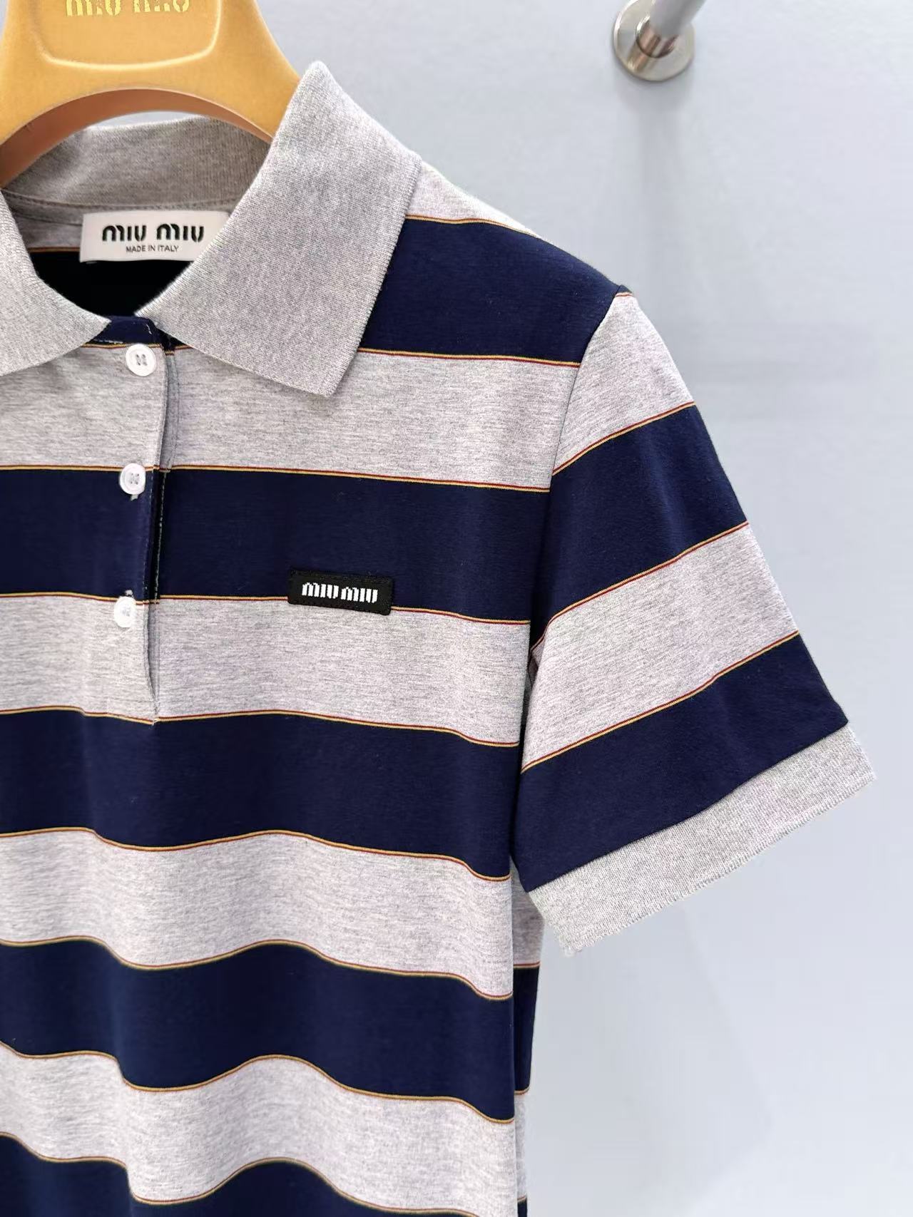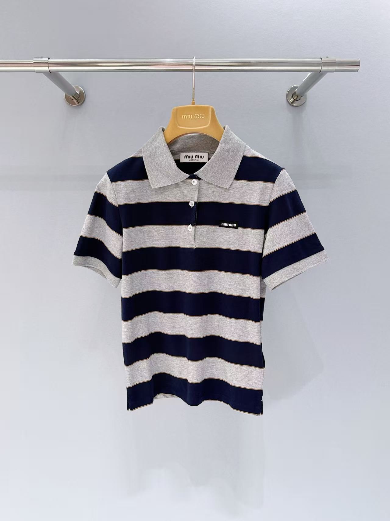 2026早春 Miu家 藍灰條紋 Polo 短袖