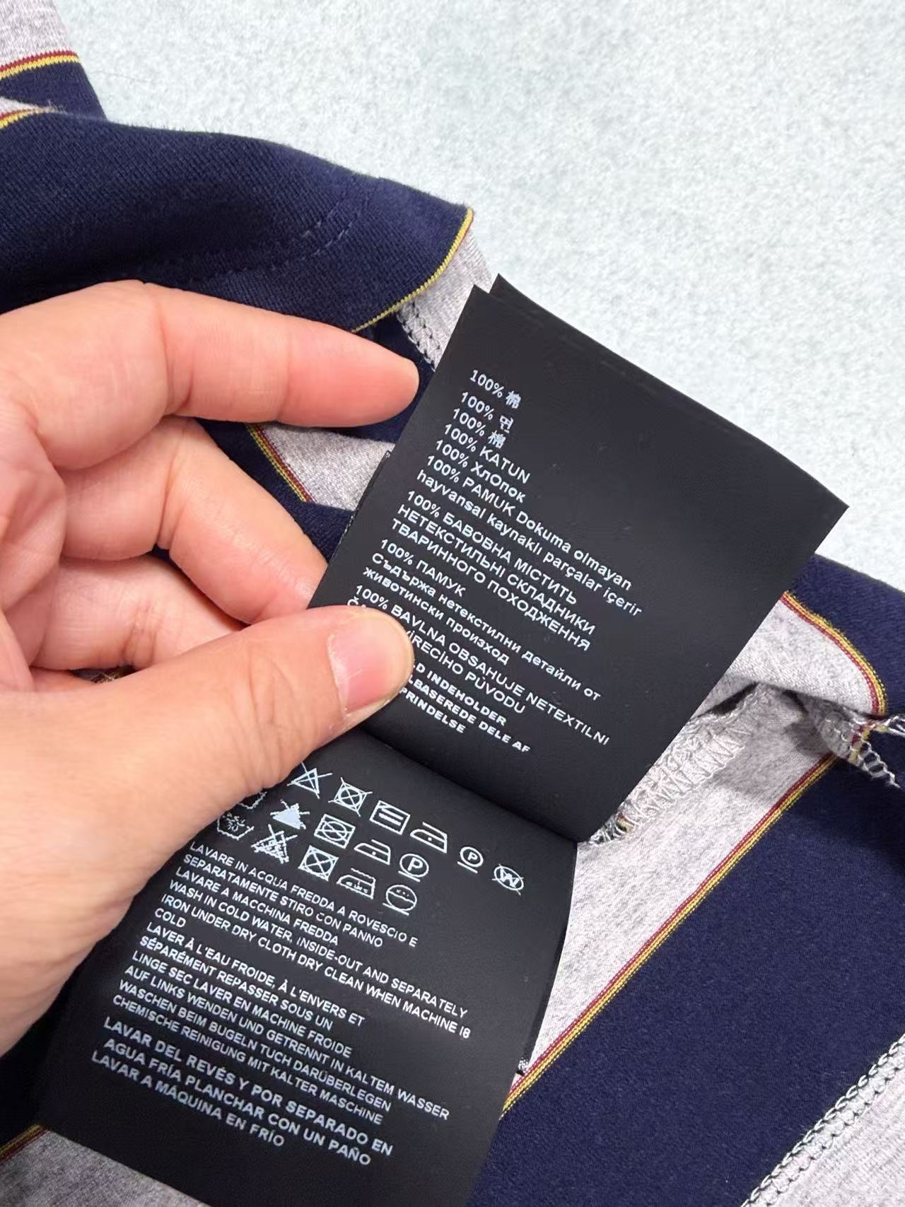 工藝: 經典 Polo 領結合高密度撞色條紋織法。