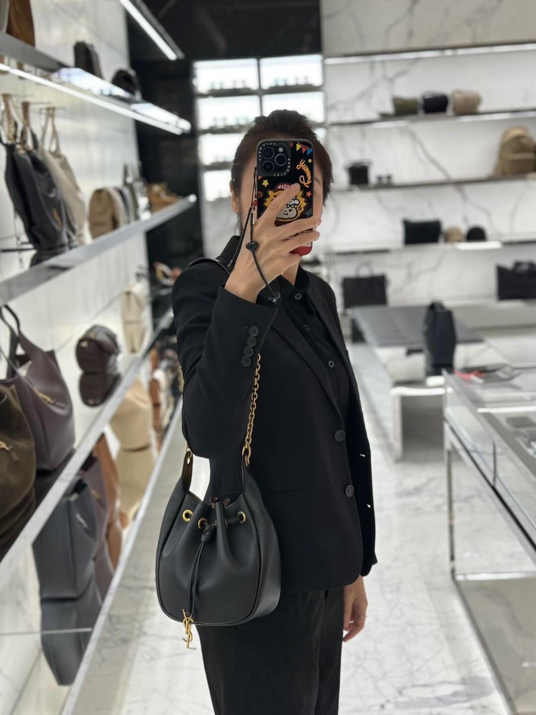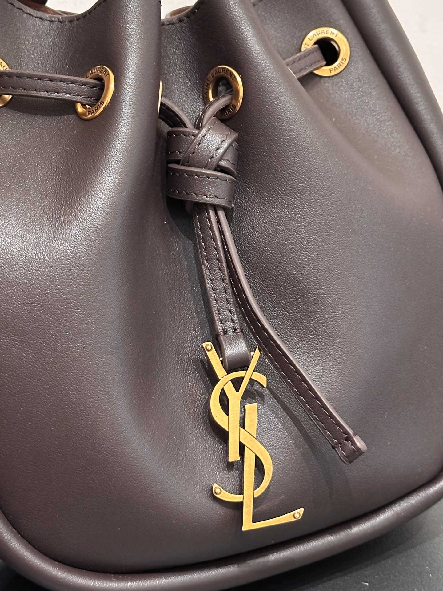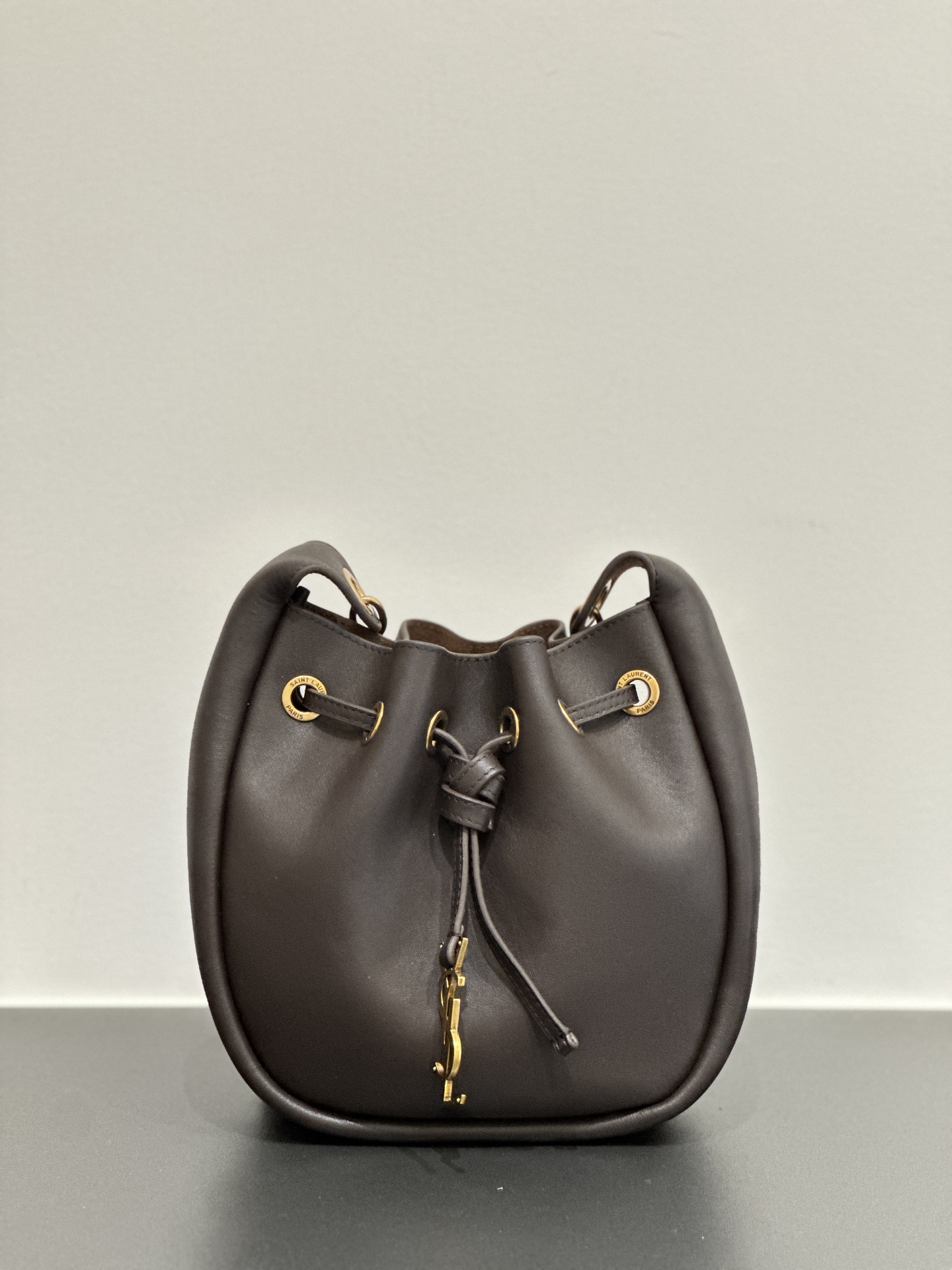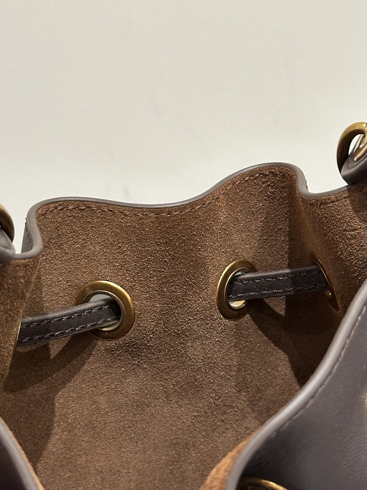 包身是那種越看越耐看的風格,低調卻藏不住品味。包口採用抽繩設計,開合方便又好收納,小巧外觀卻有驚人的容量,不論是手機、氣墊、口紅、鑰匙、耳機都能輕鬆放入。