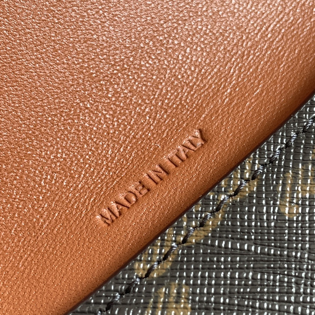 以牛皮革製作,表面紋理細膩,手感柔軟卻保有挺度。內襯採用織物與皮革混搭,提升包款整體的耐用度與層次感。