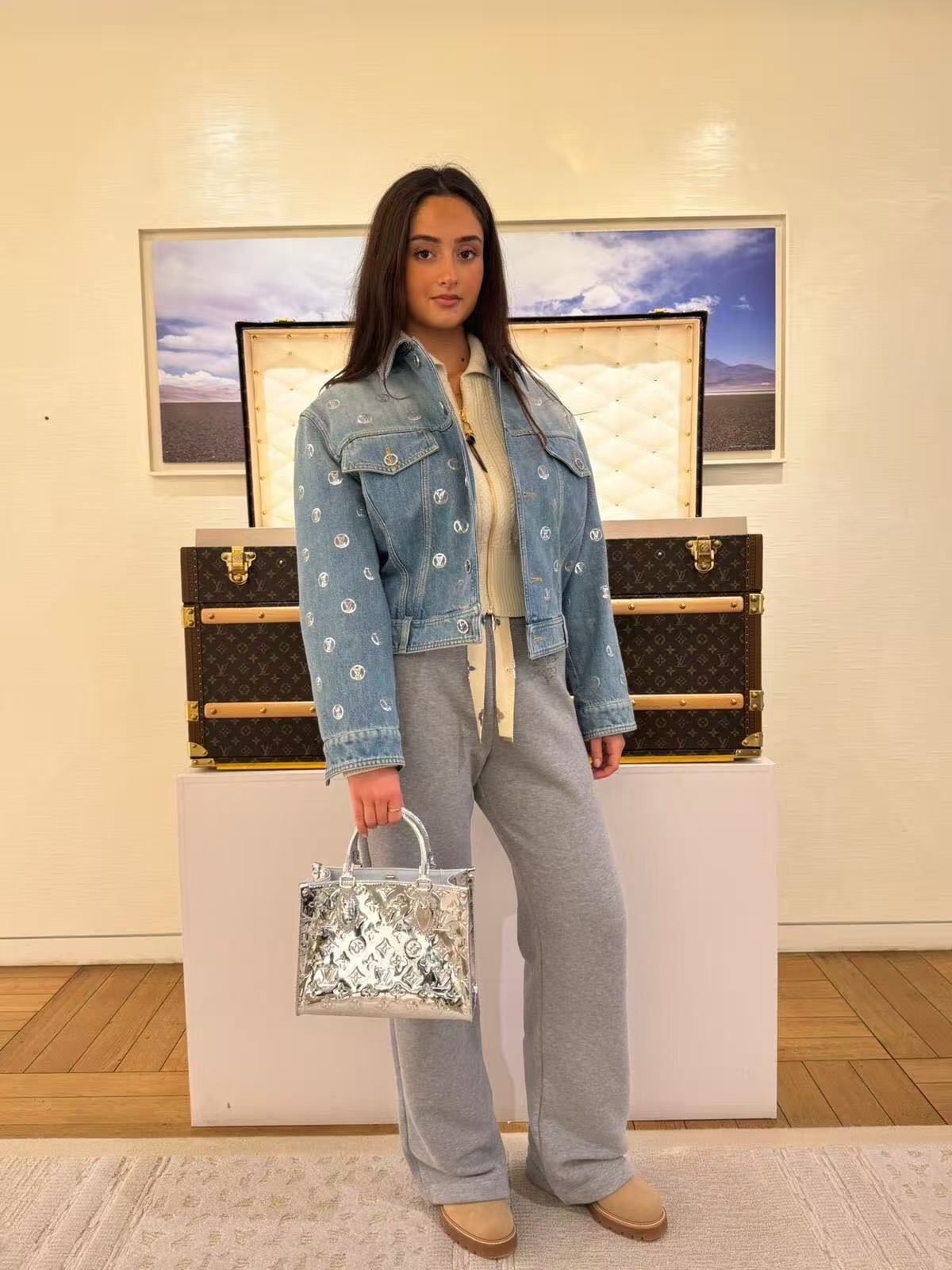 以經典丹寧為基底,融入標誌性的老花圖案,透過重工亮片繡花工藝呈現,每一針每一線都散發細膩的光澤,奢華感直接拉滿。