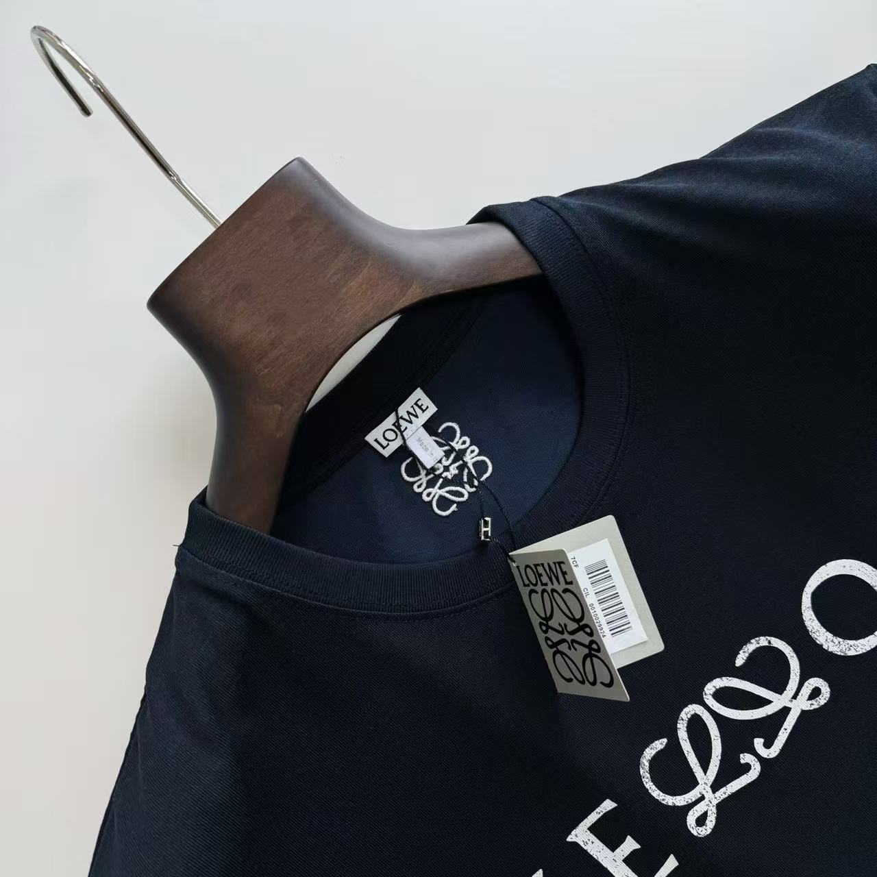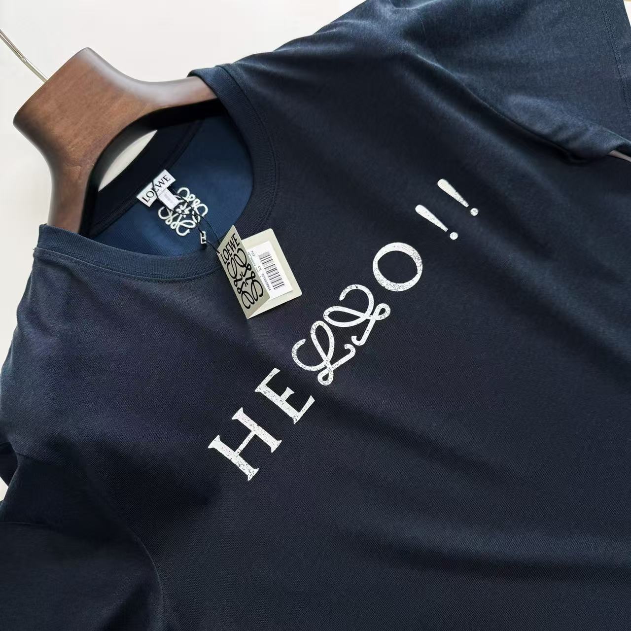細節控絕對不能錯過這款單品的工藝處理。胸前的 "Hello" 結合 Anagram 圖騰,特別採用了帶有復古韻味的龜裂紋效果印花,營造出一種充滿時間痕跡的藝術美感。