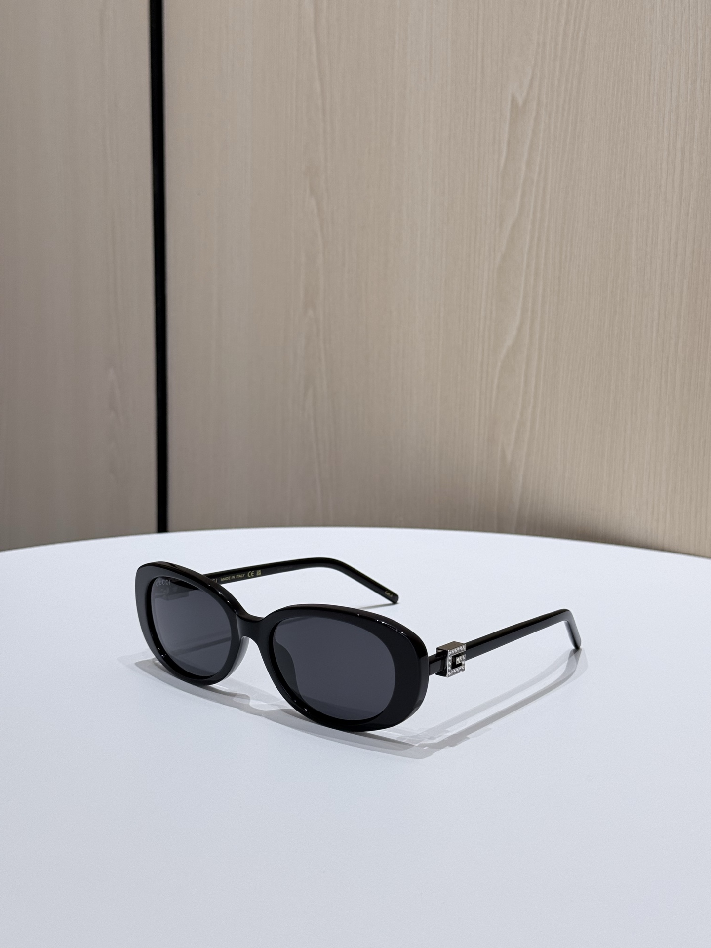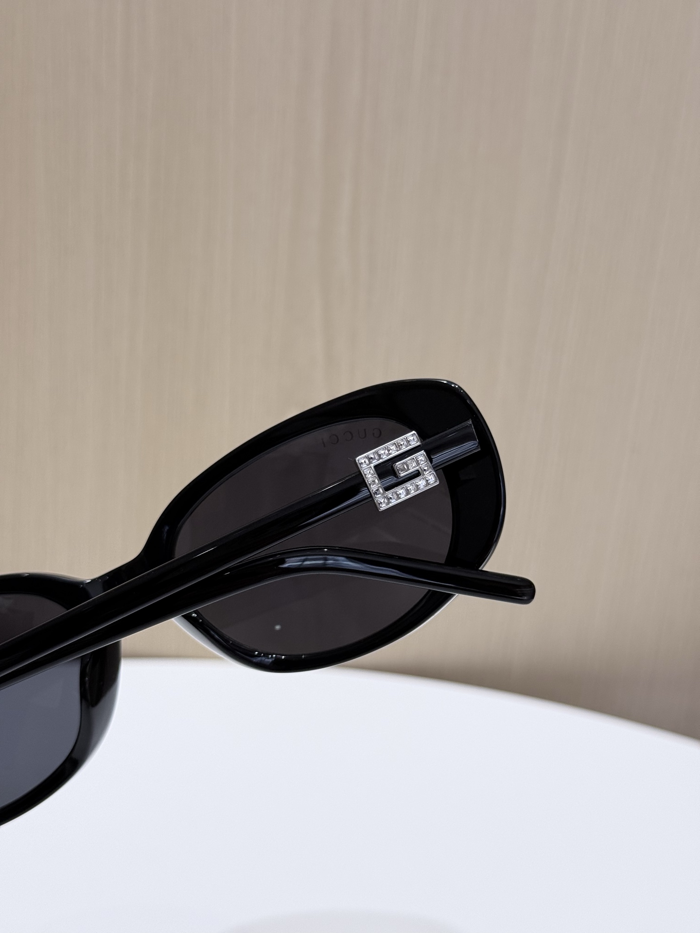 鏡腿的部分延續品牌標誌性的設計語言,以立體方形「G」Logo 展現識別度,部分款式還點綴晶瑩水鑽,細節中散發出低調奢華感。