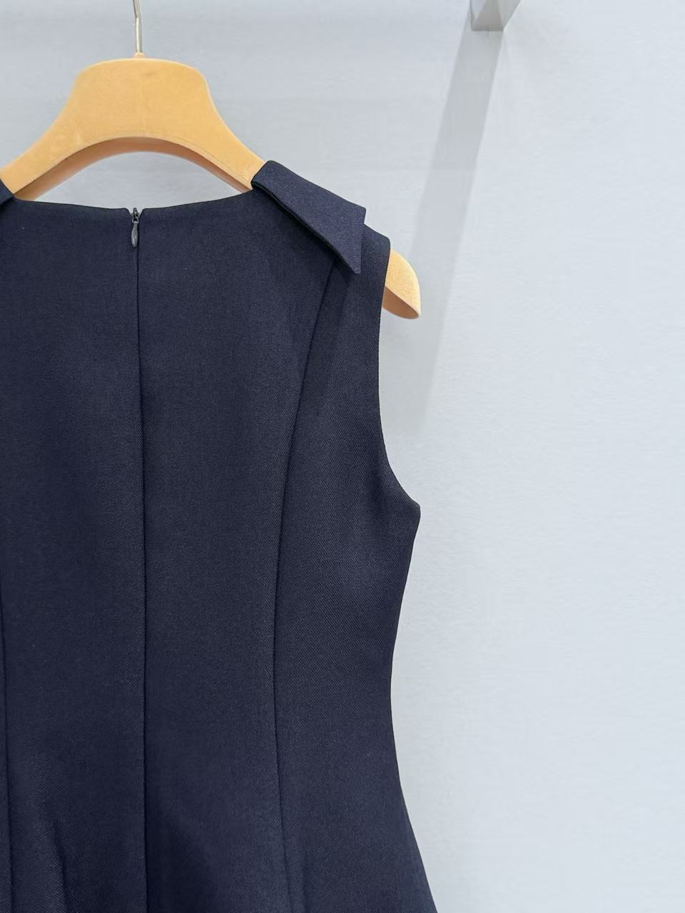 無袖方領結合肩部小翻領設計,不僅能視覺上修飾肩頸線條,更散發出一種如 60 年代名伶般的復古俏皮感。