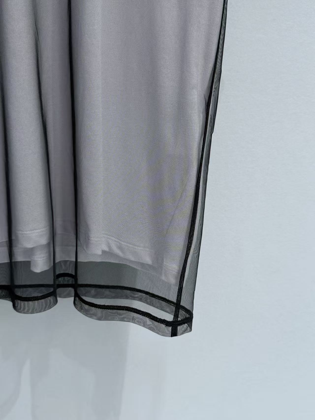 黑邊滾邊勾勒出的廓形 結合外層網紗的通透感,讓整個人看起來既有稜角又充滿了神祕的時髦氣息。