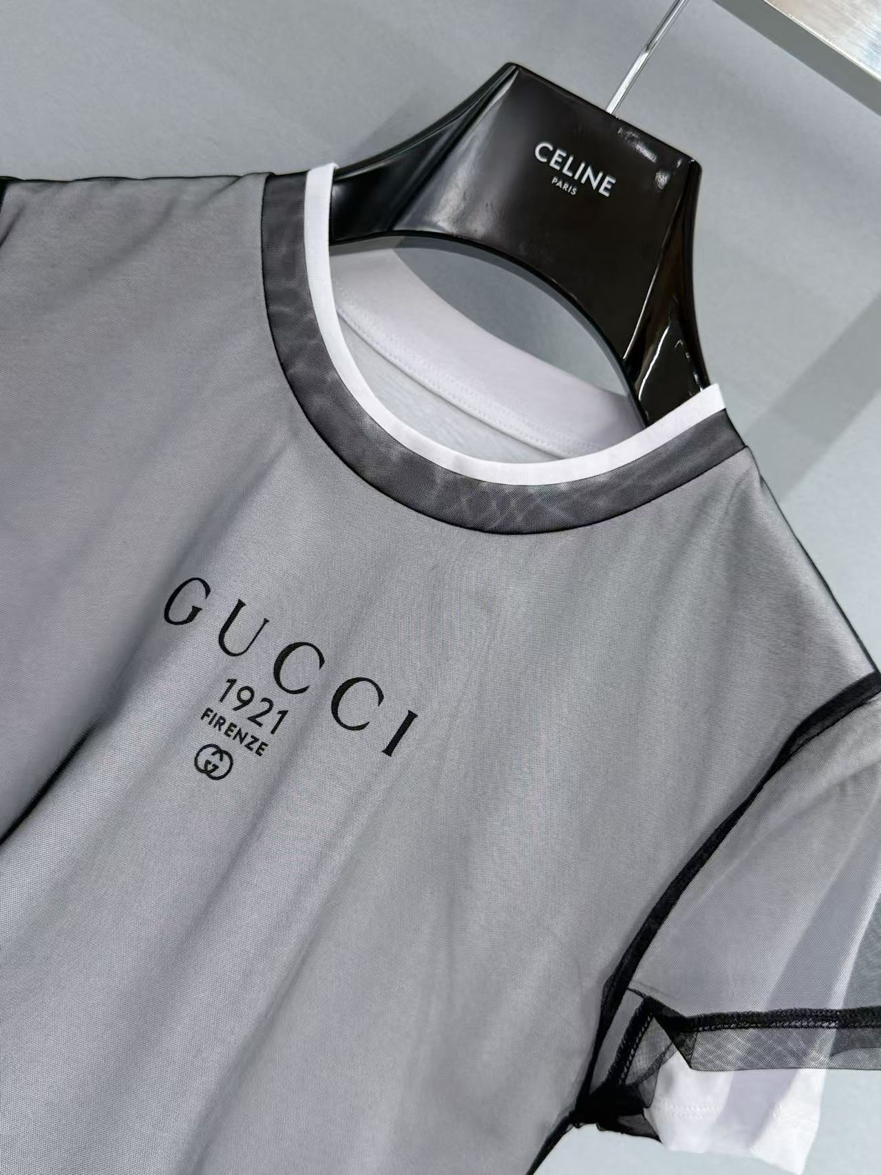 正面印有的「GUCCI 1921 FIRENZE」與雙 G 標誌,在網紗下隱約浮現,質感極佳。