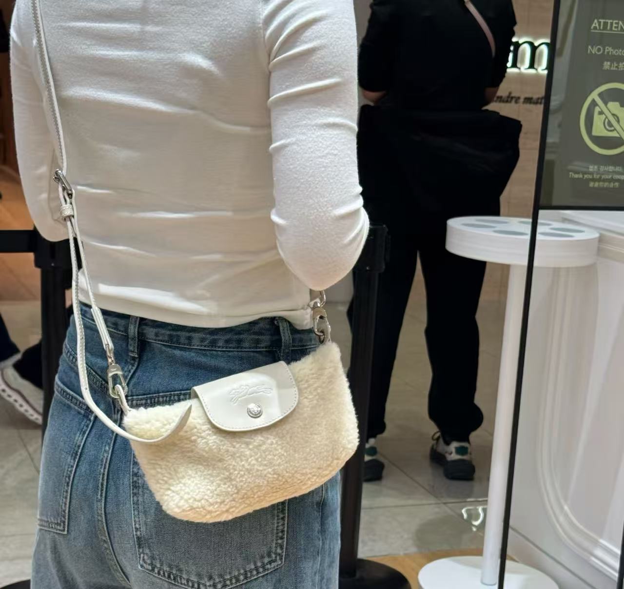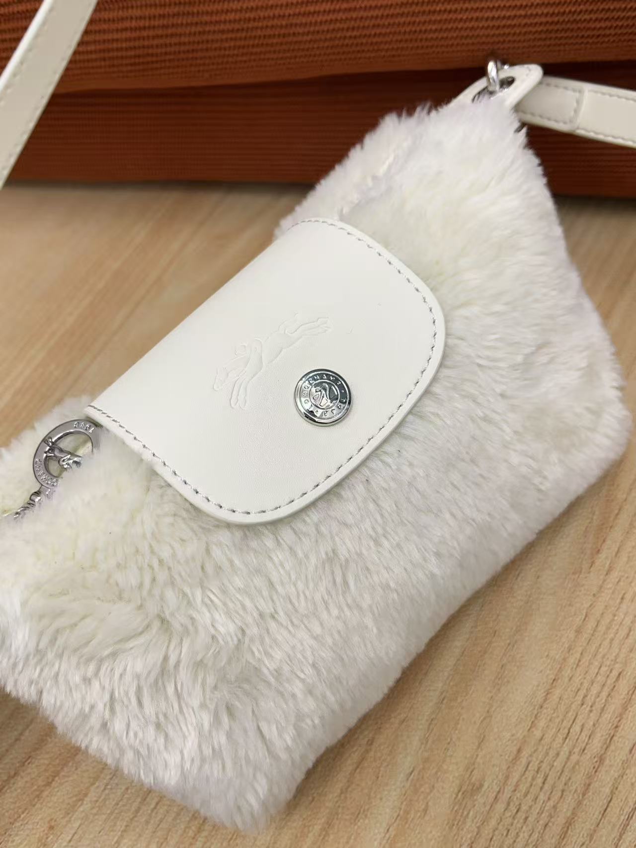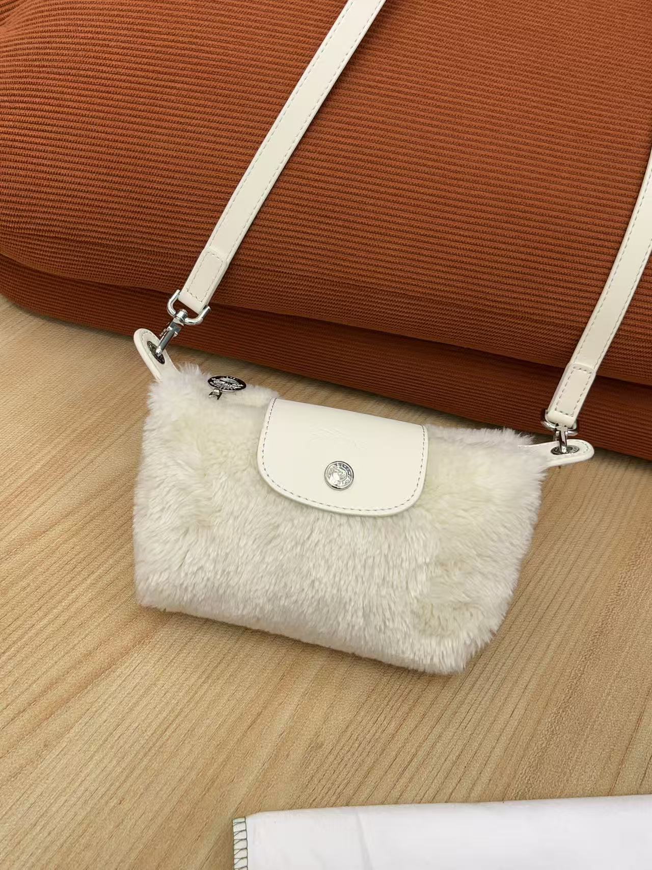 Mini 餃子包完美結合了時尚外觀和實用機能:羊羔毛萌感外觀: 包身覆蓋著柔軟的羊羔毛,充滿了秋冬的溫暖氛圍,一揹上身吸睛度滿分!