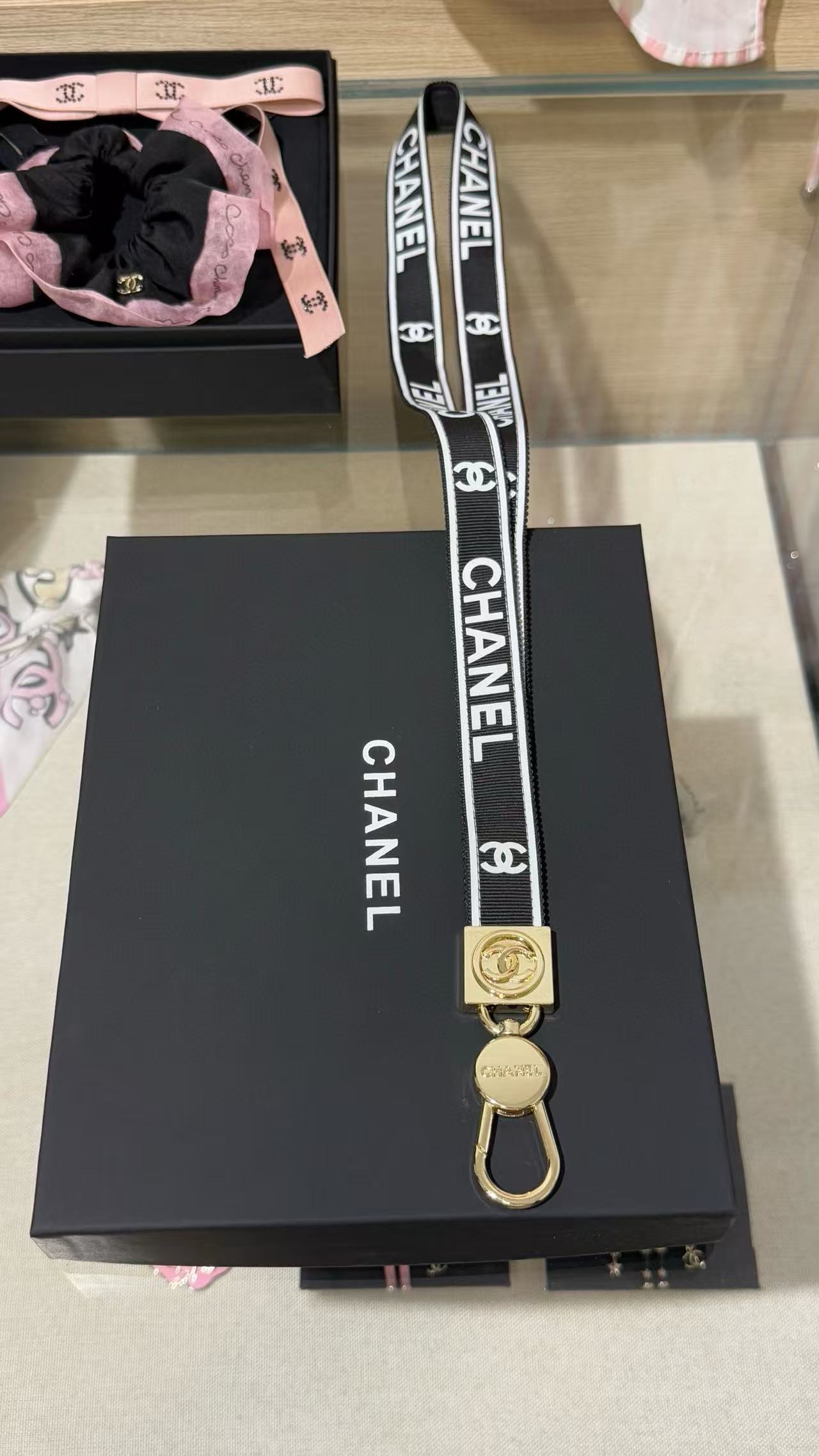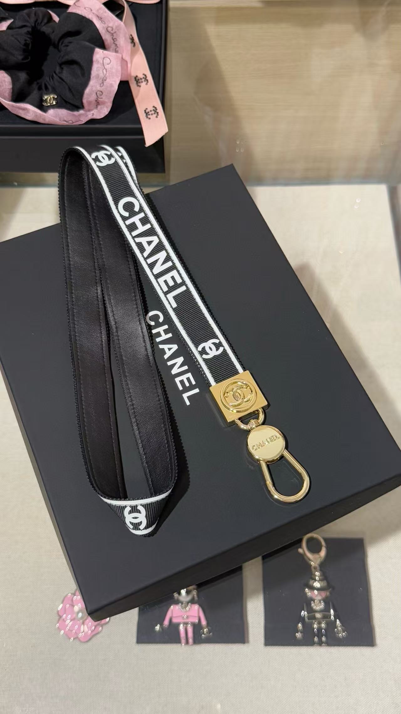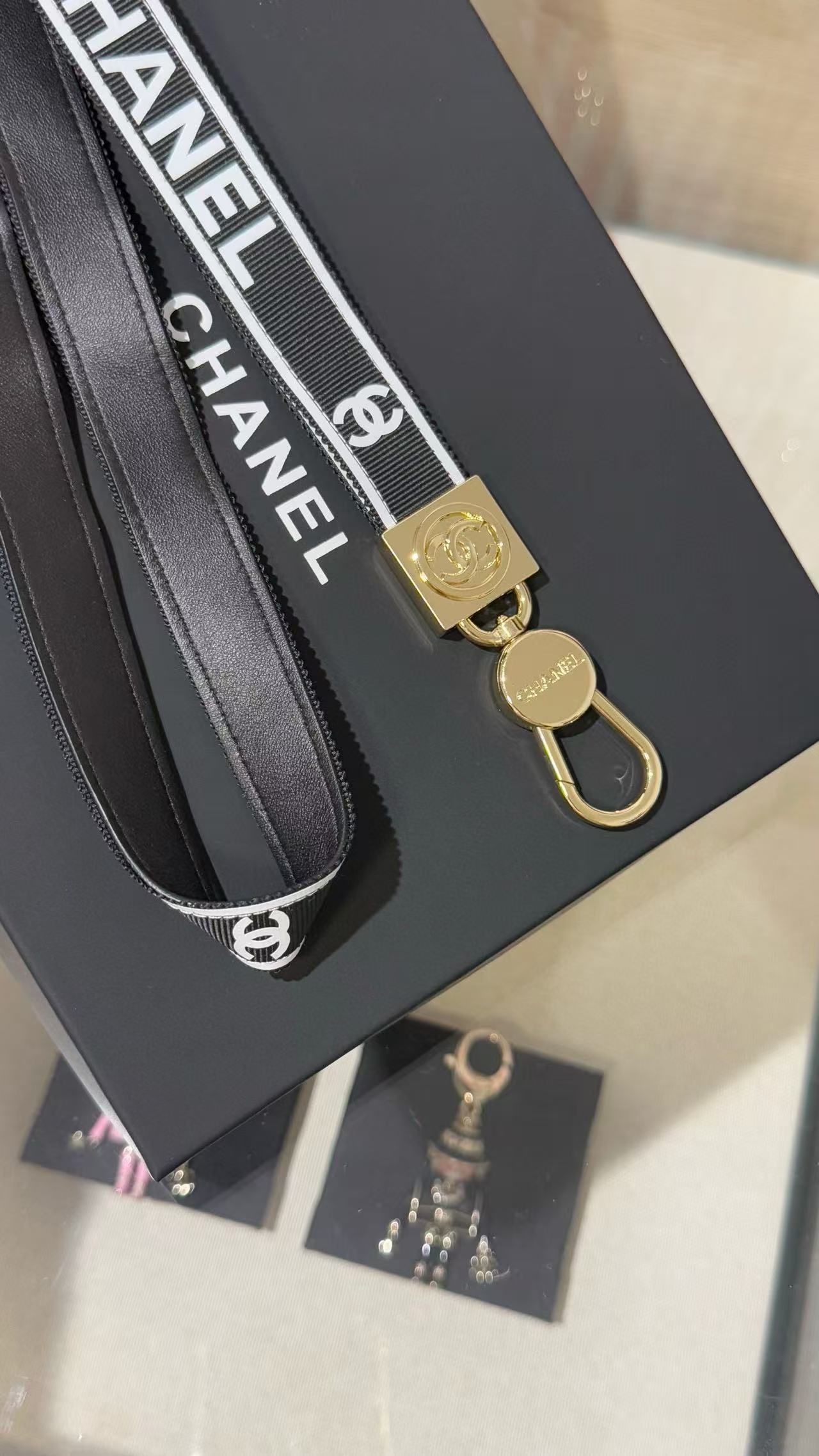 2025早秋 C家 黑金織帶字母手機掛繩