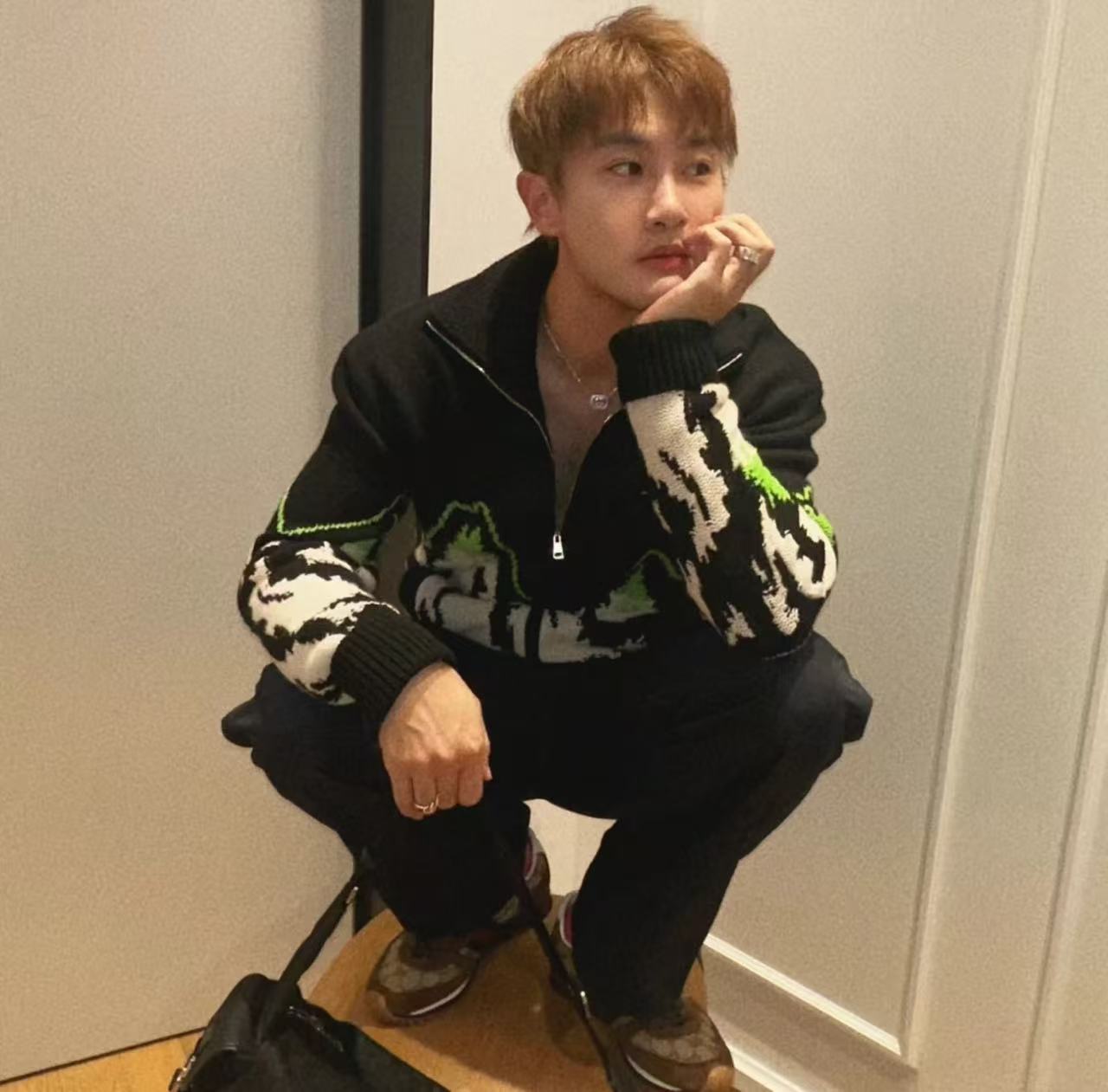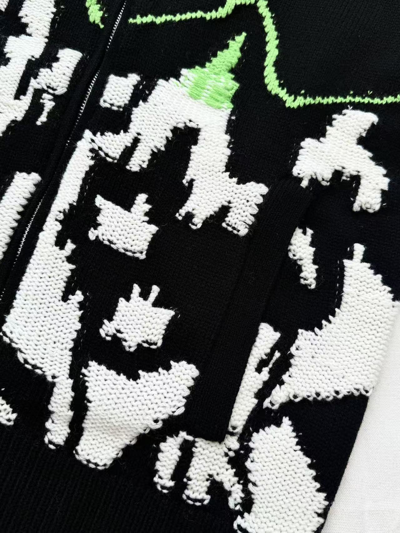 針織上的藝術景致:25秋冬系列山景字母拼色拉鍊外套