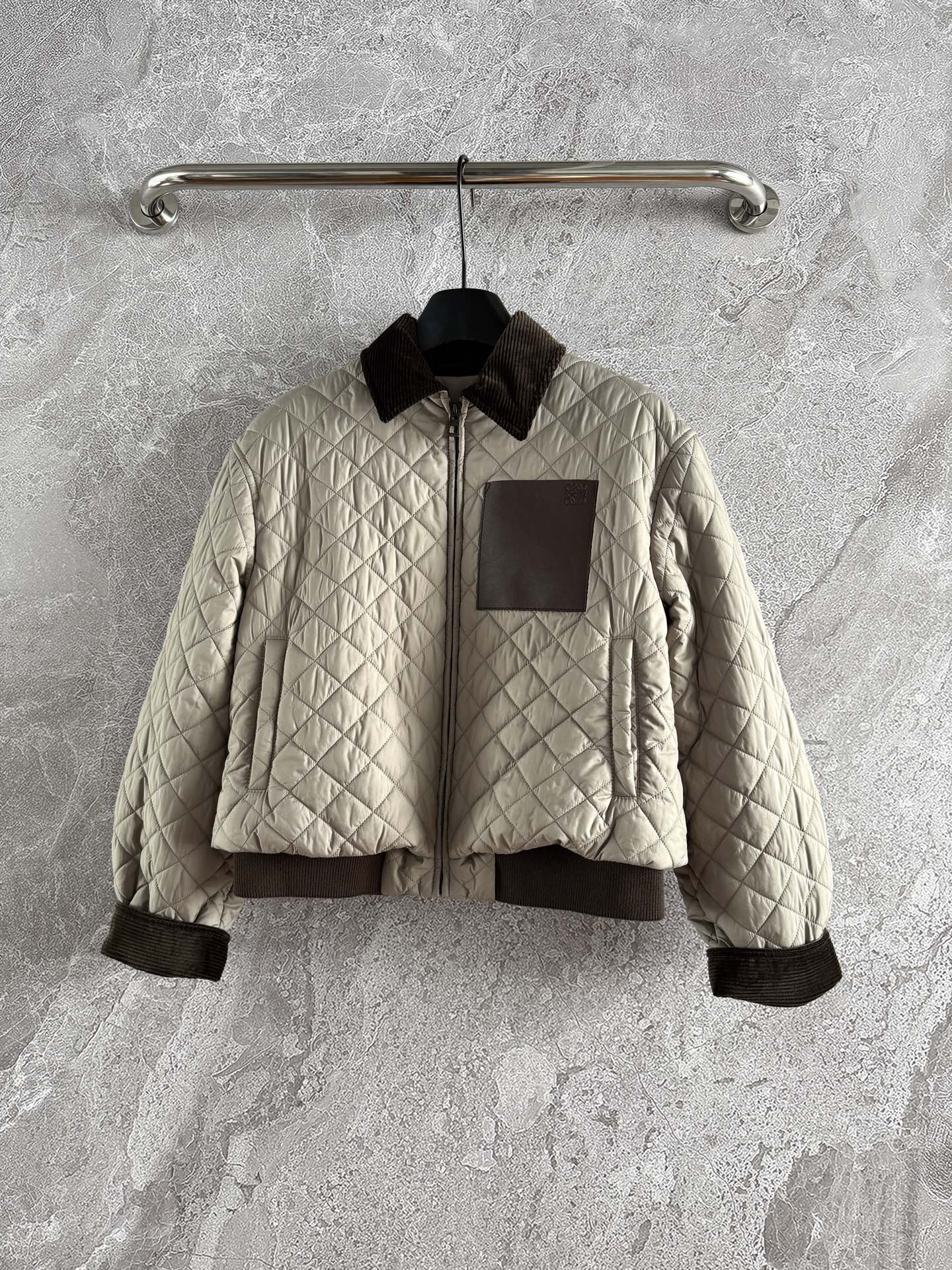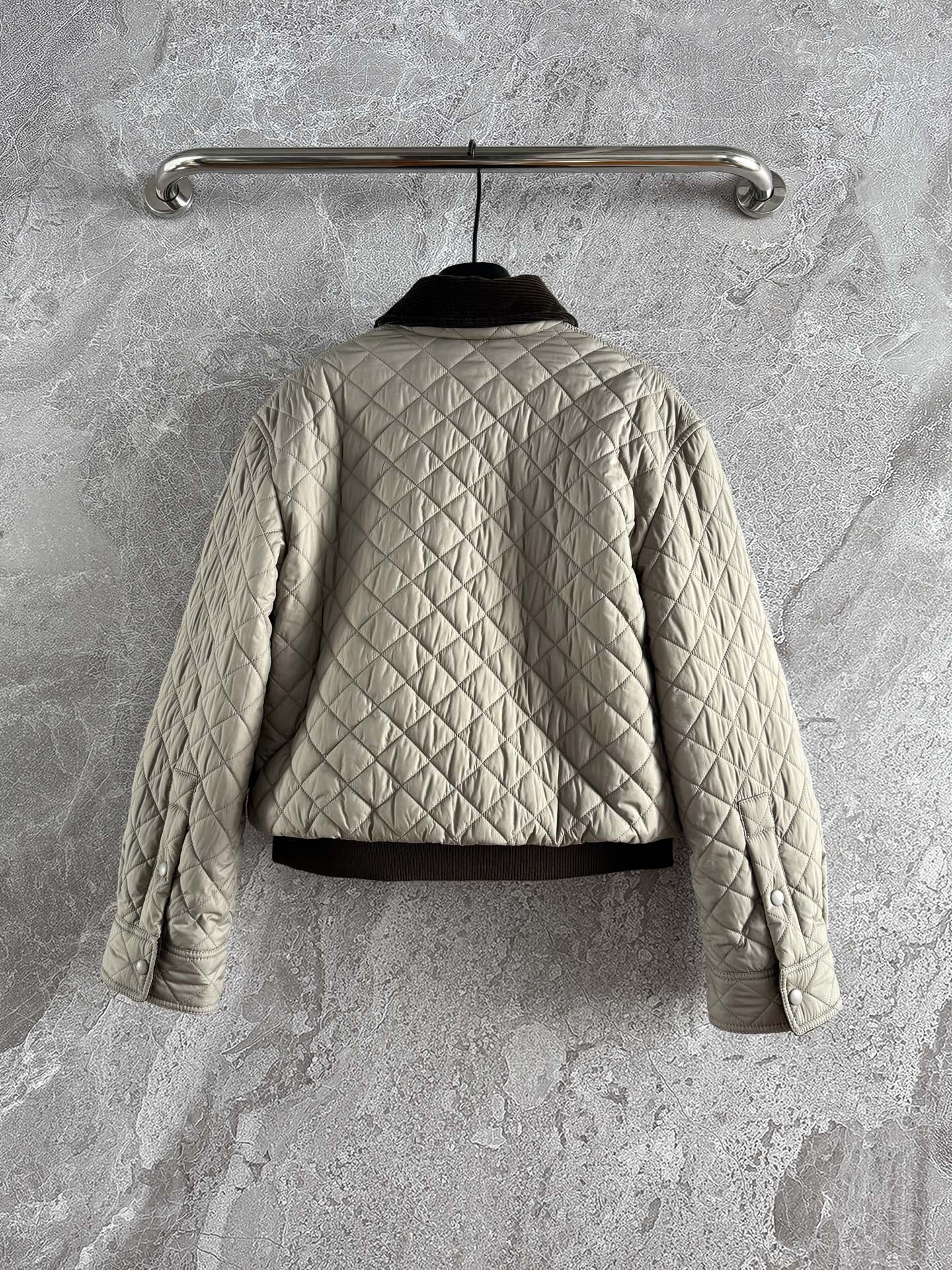 這款菱格皮標棉服外套,是那種一穿上就能感受到高級質感的單品。輕盈、保暖、時髦兼具,經典皮牌設計更讓整體辨識度加倍。