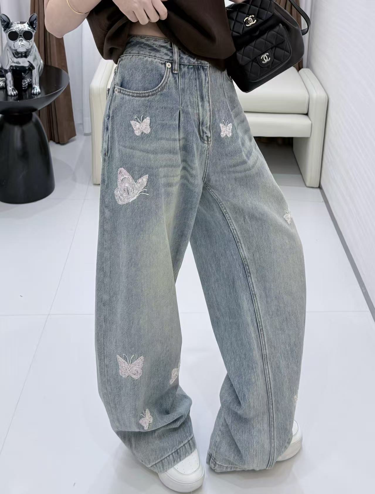 2026早春新品 Ann家 蝴蝶釘珠刺繡彎刀牛仔褲