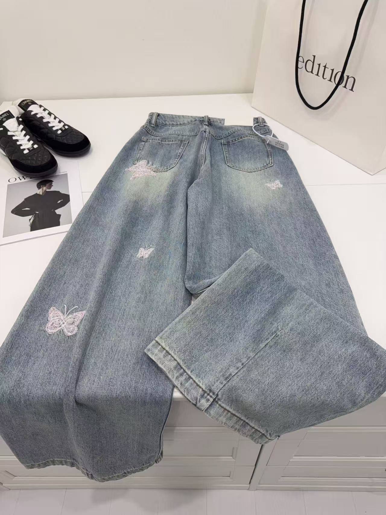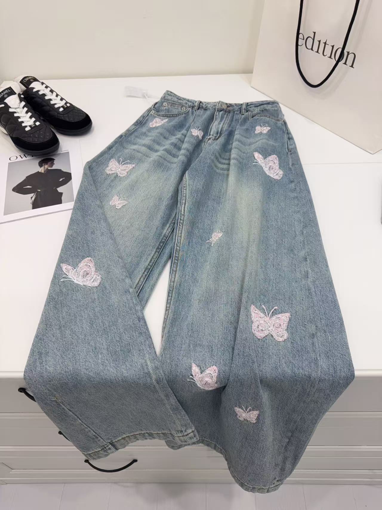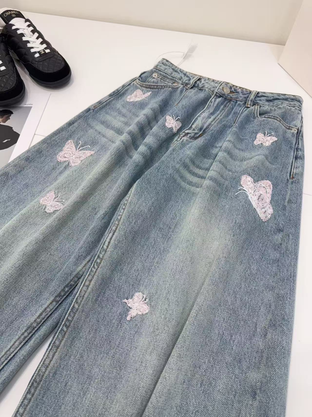 AN 系列:定義當代丹寧美學!解析「蝴蝶釘珠刺繡」彎刀闊腿褲的修飾神力