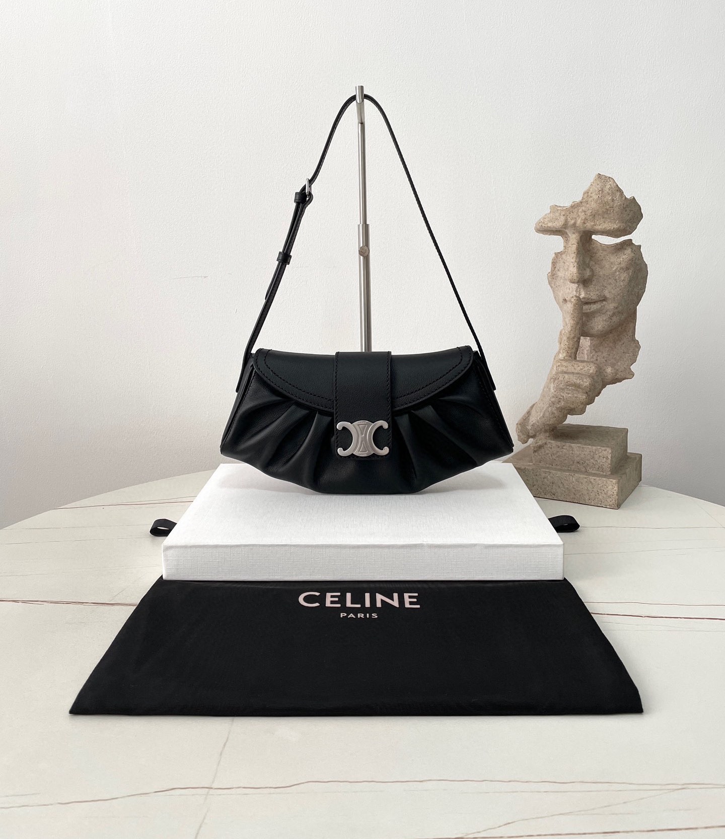 褶皺的包面加上銀色的凱旋門扣,整個看起來質感超好,超適合喜歡銀色配件的女孩!