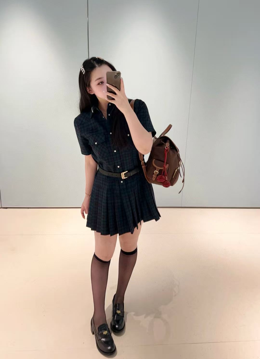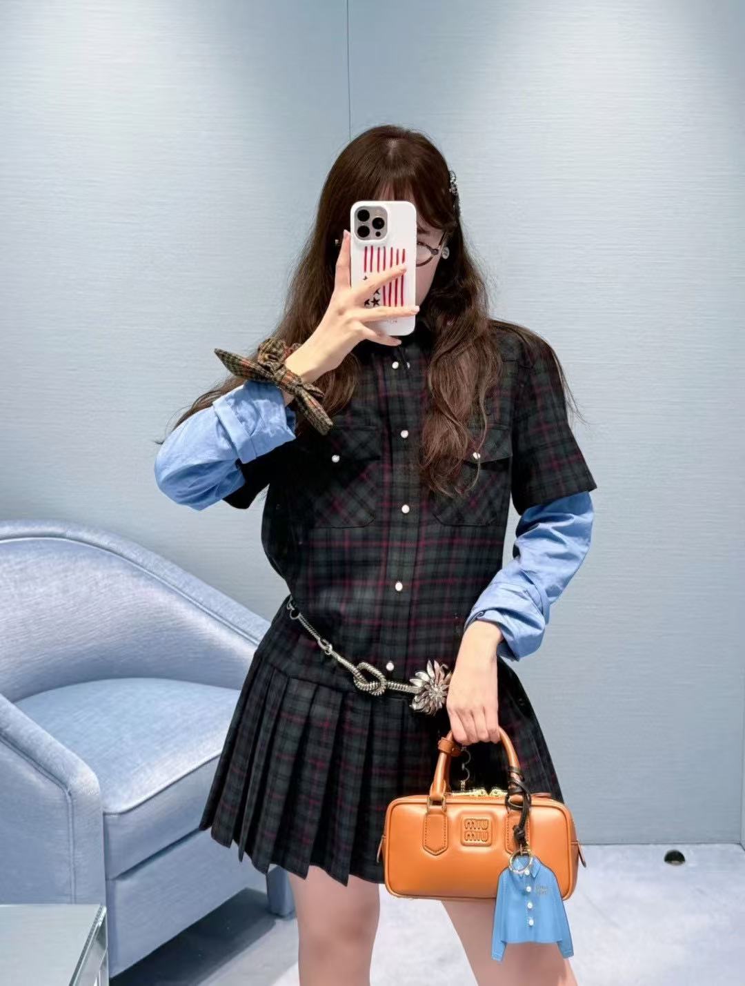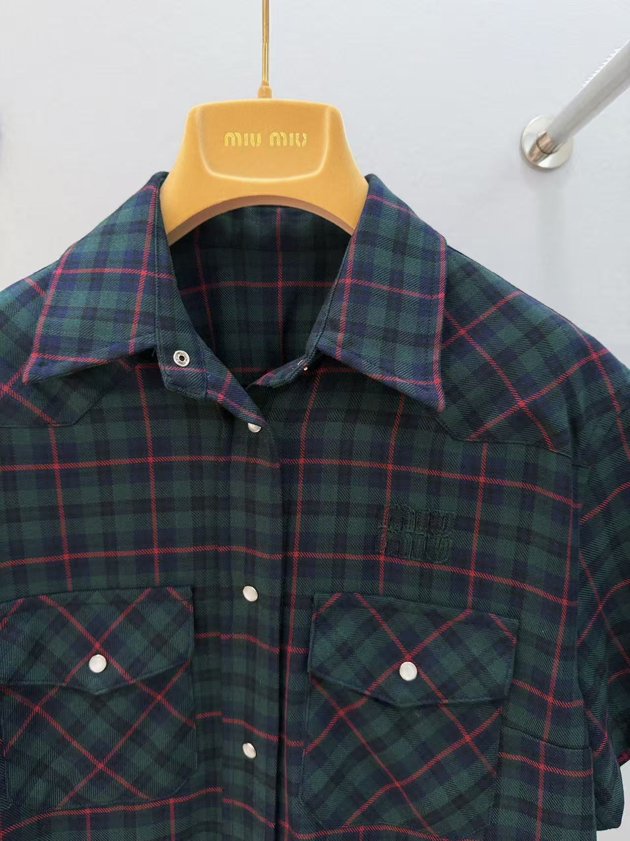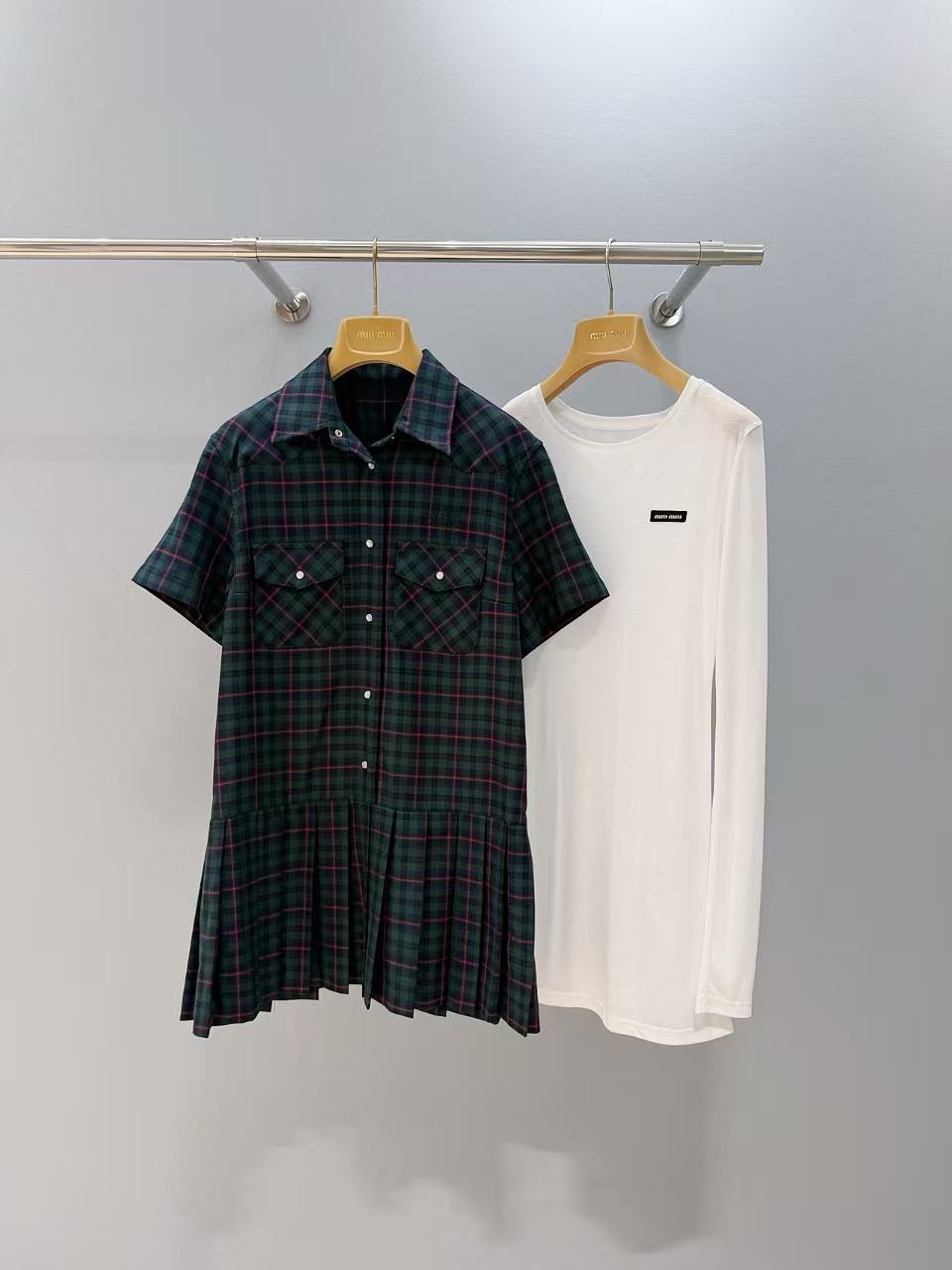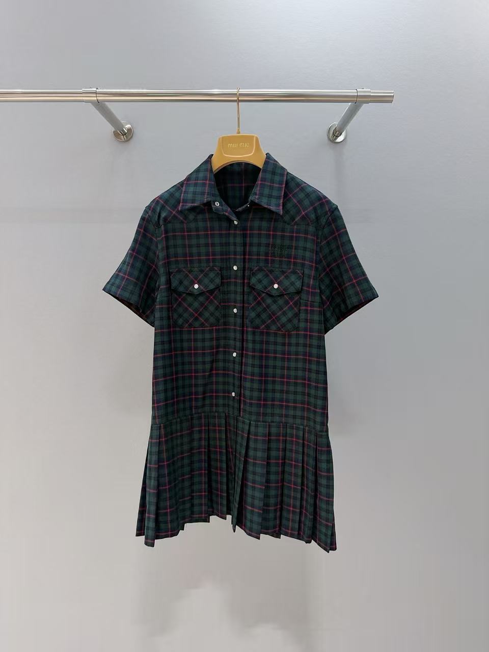 2025早秋 Miu家 徽標字母格紋襯衫百褶裙