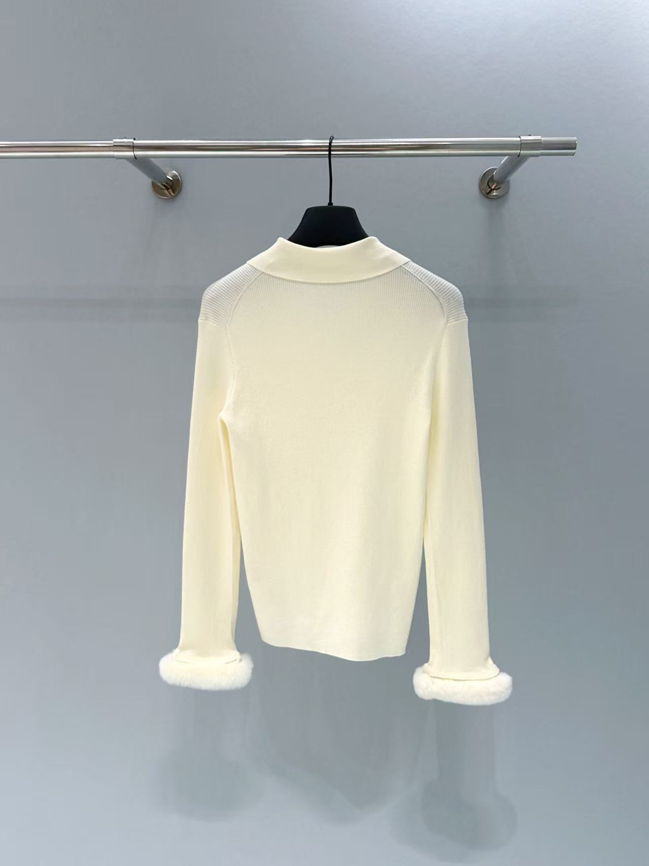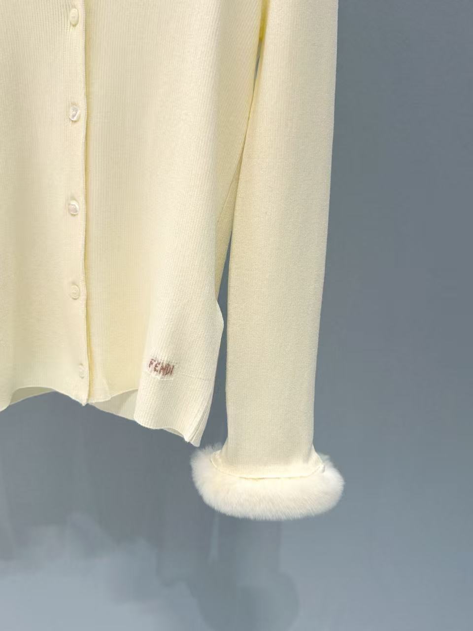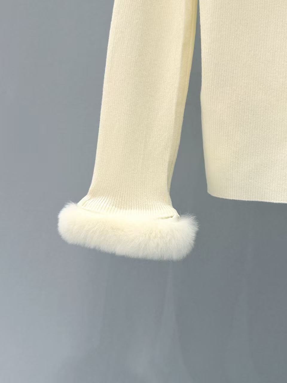 水貂袖口部分真毛柔軟豐盈,增添奢華質感,整件針織密度均勻,不易起球變形,保養得當能穿好幾年。