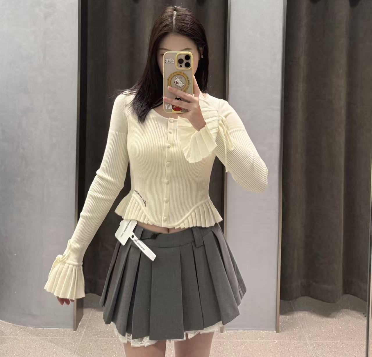 波浪花邊下擺工藝: 增加整體的視覺豐富度,即便簡單外搭也能呈現出充滿層次的穿搭張力。