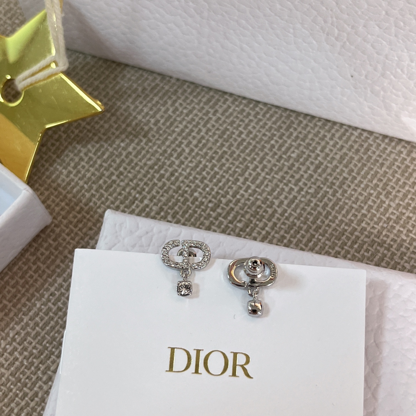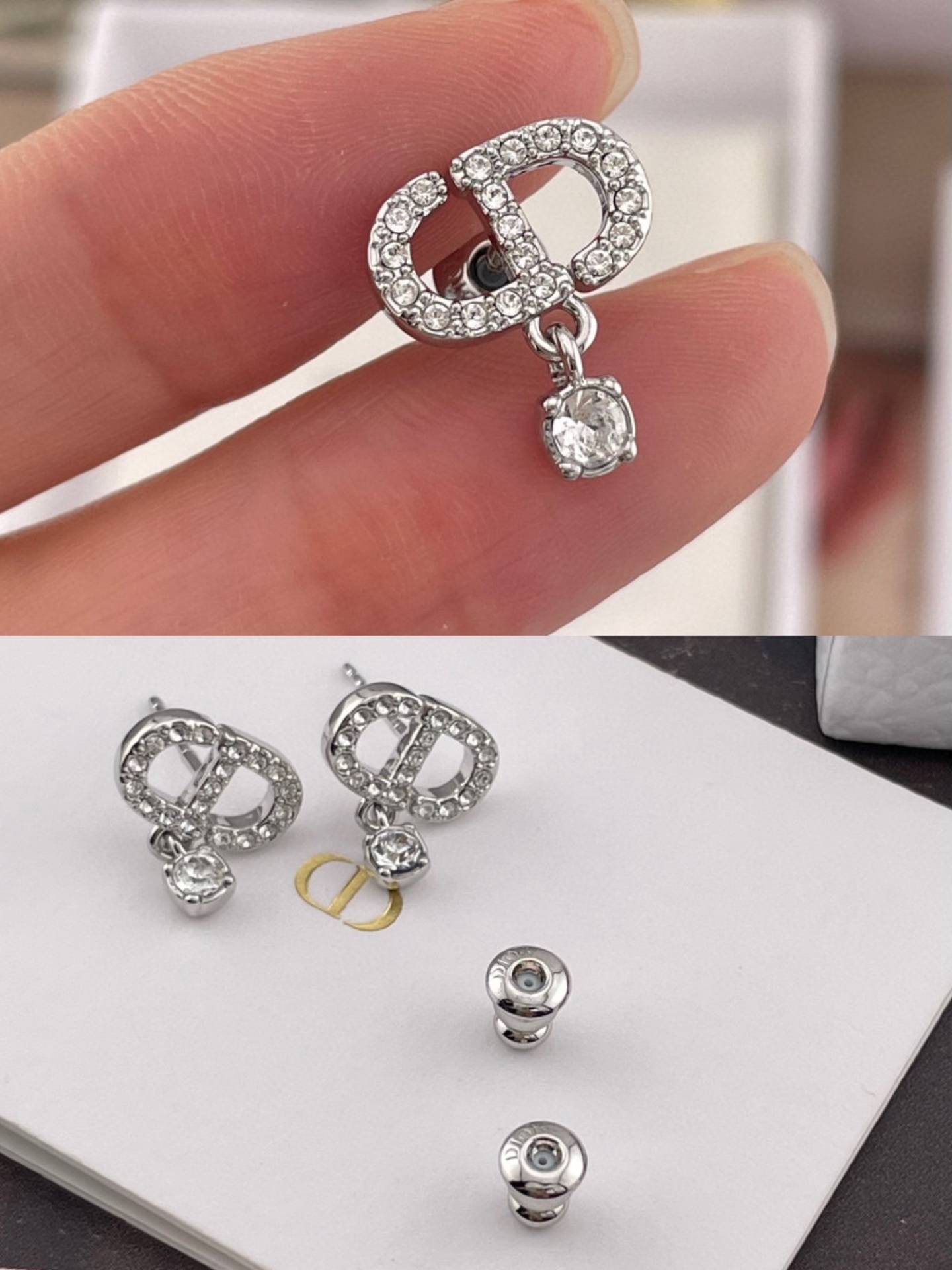 整體以經典 CD 標誌為主體,上方鑲嵌不同規格的水鑽,細節滿滿、閃耀奪目。銀色調清冷高雅,佩戴格外出眾,不論是搭配日常造型還是晚宴穿搭,都能瞬間提升整體氣質。