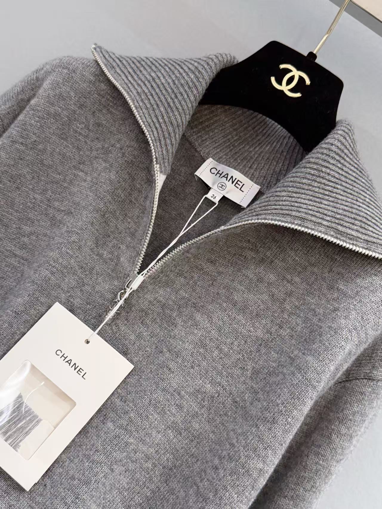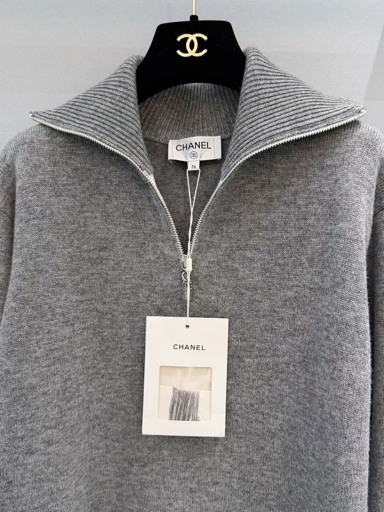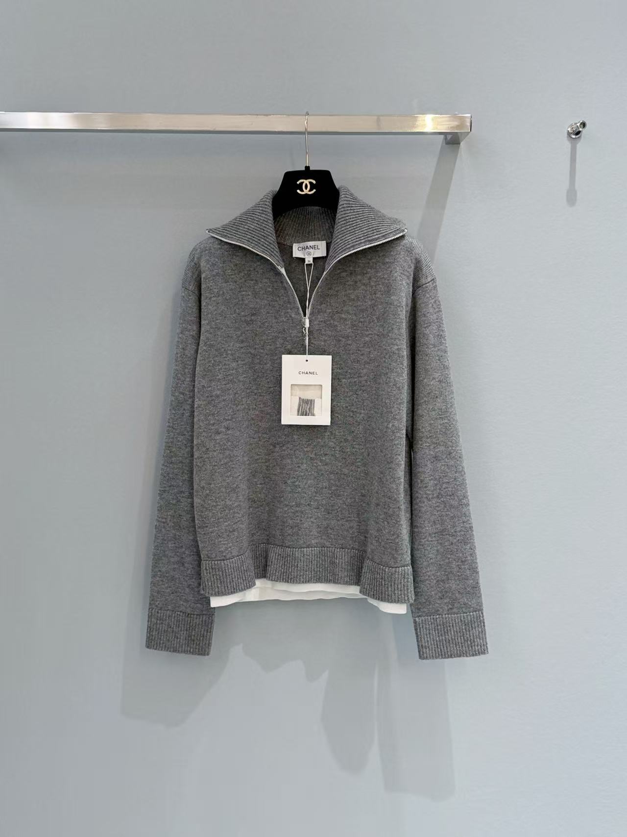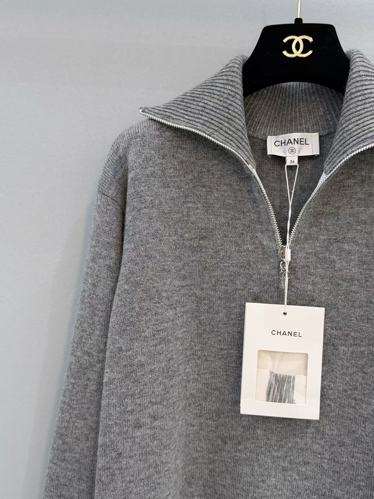 2026早春 C家 灰色大翻領半拉鏈針織衫