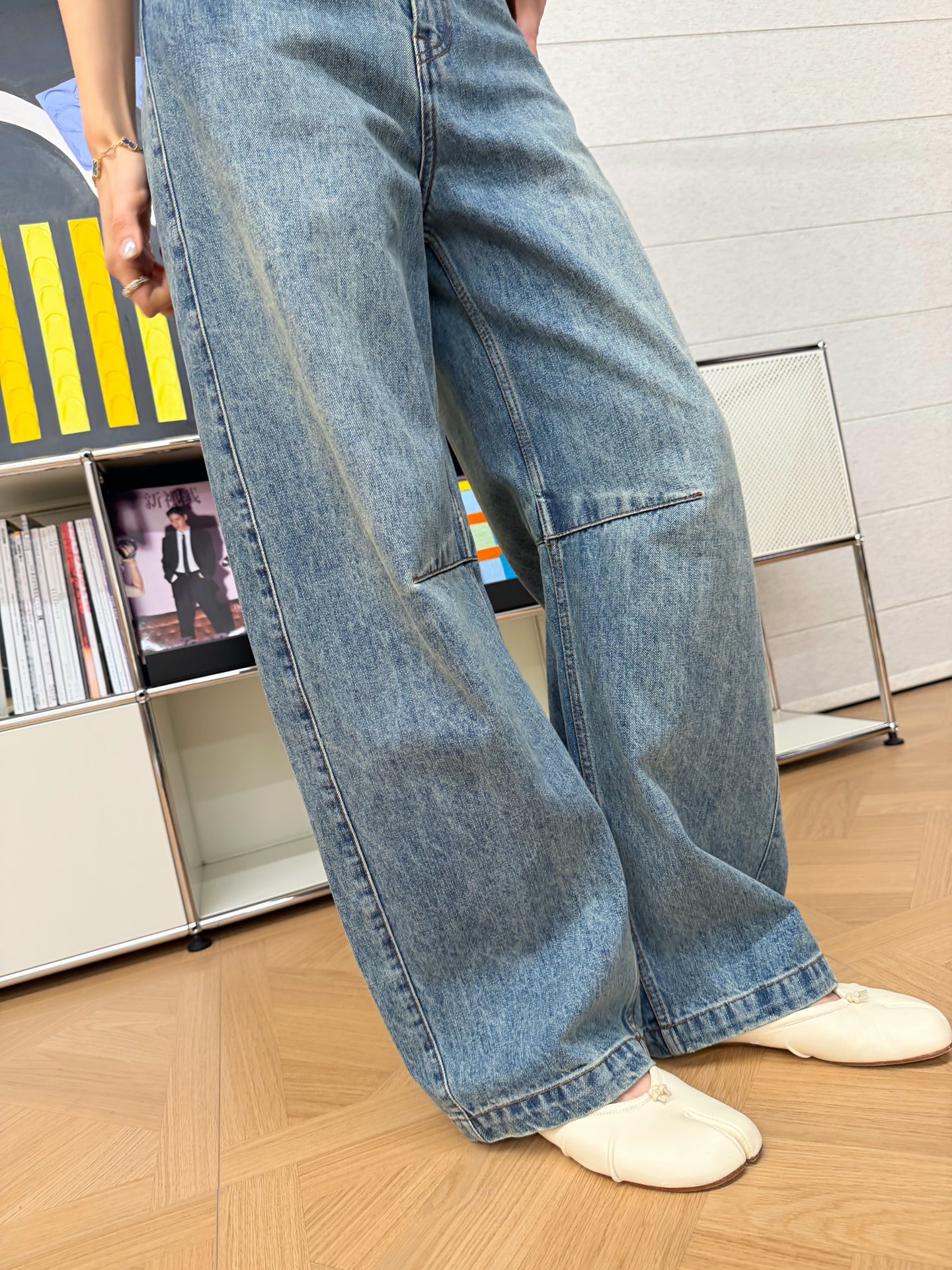 丹寧布本身的垂墜度很好,能幫腿型做自然修飾,耐穿度也非常高,是那種不管穿幾年都不會退流行、越洗越有味道的牛仔褲。