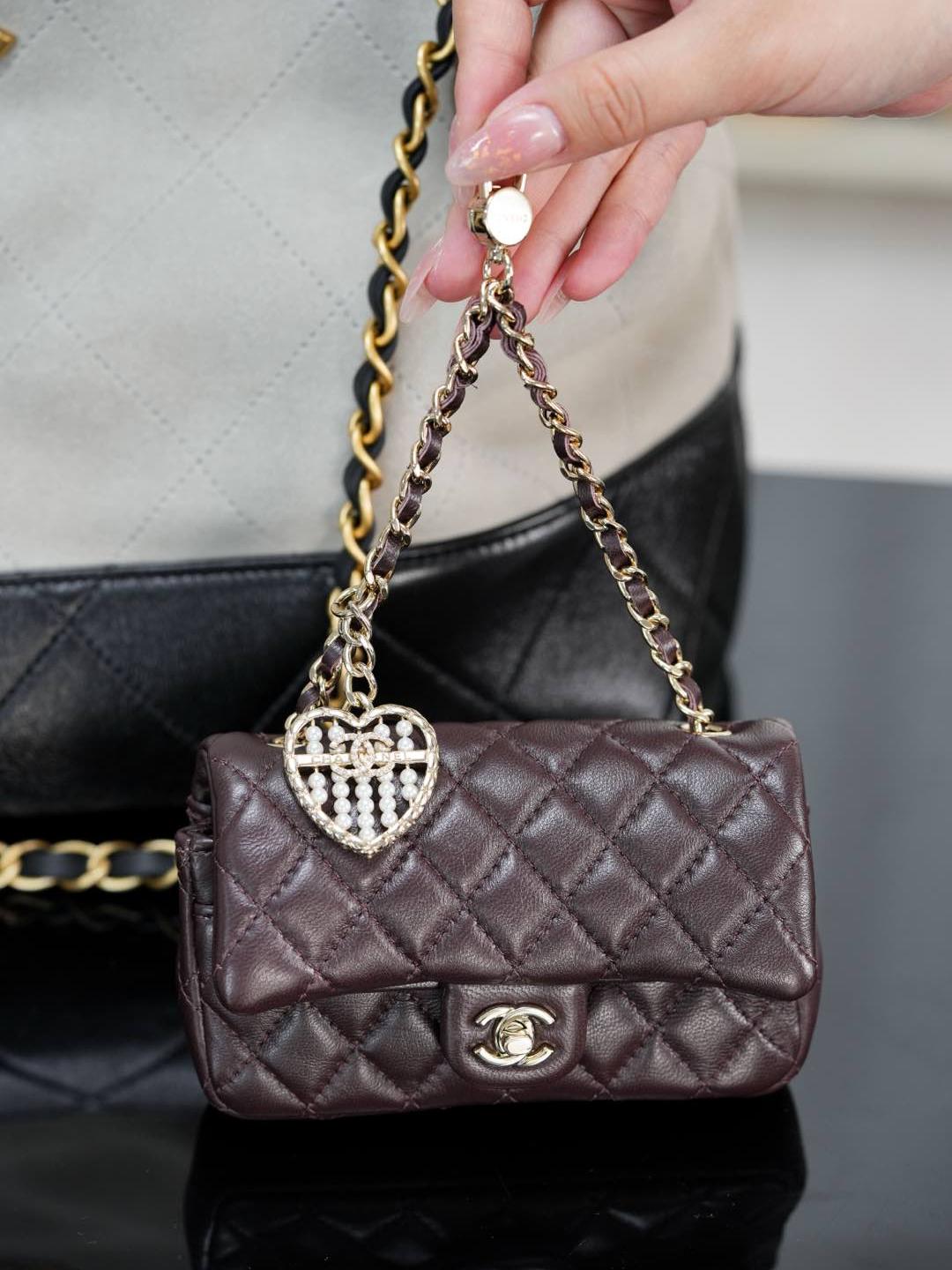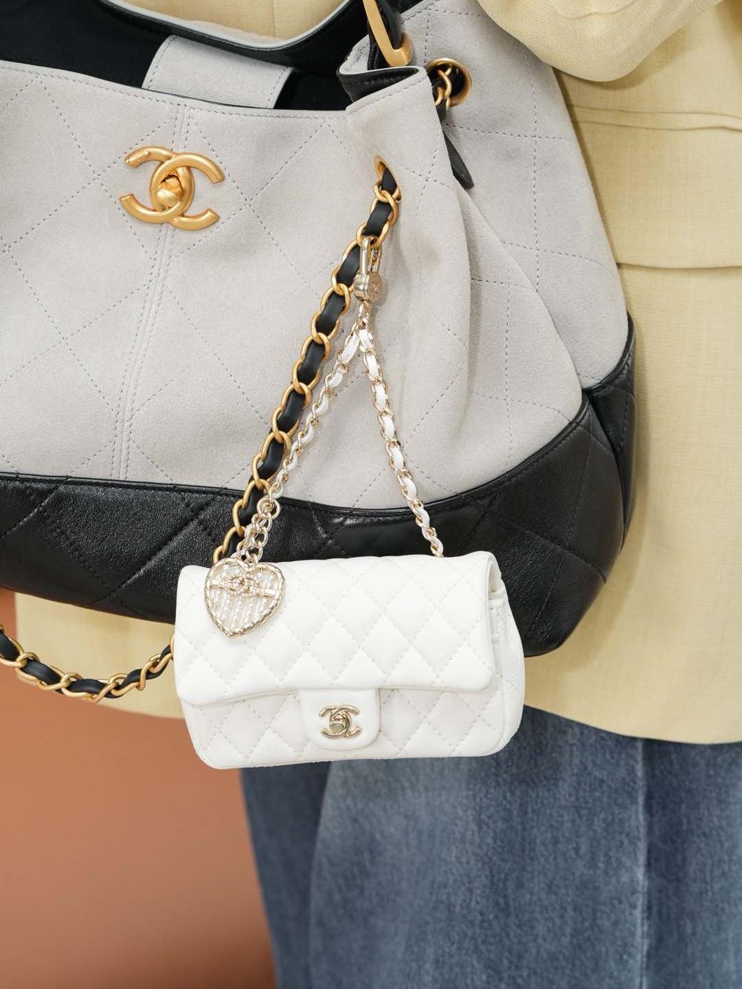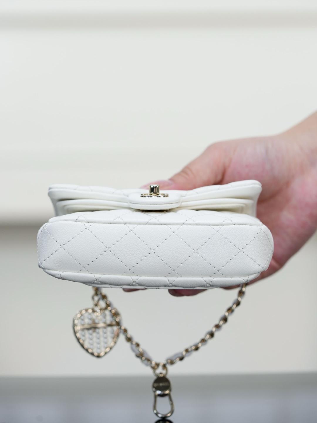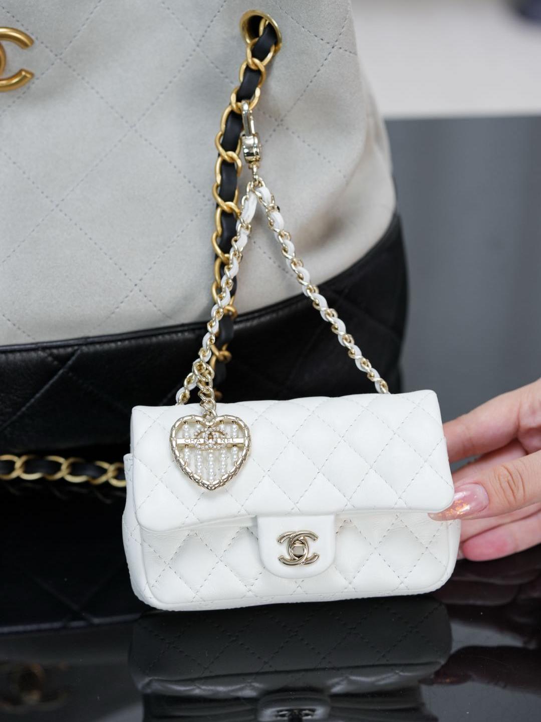 這款 25A mini「愛心珍珠」CF 掛件,推出白色與酒紅色兩種色選,可愛又精緻,完全是收藏與搭配的夢幻單品。
