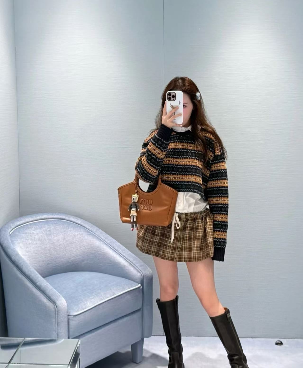Miu家 蘇格蘭風羊毛 V 領短款毛衣