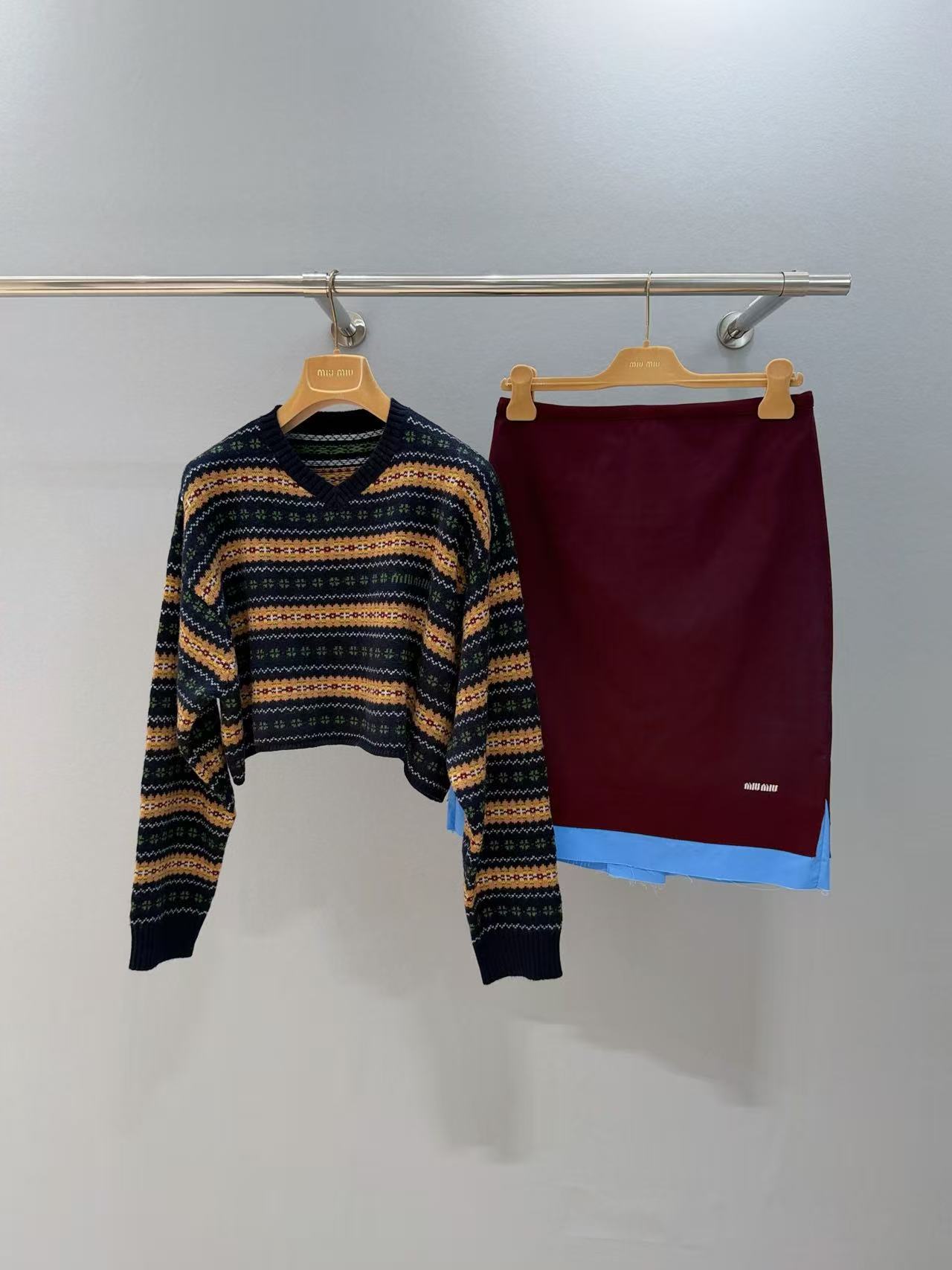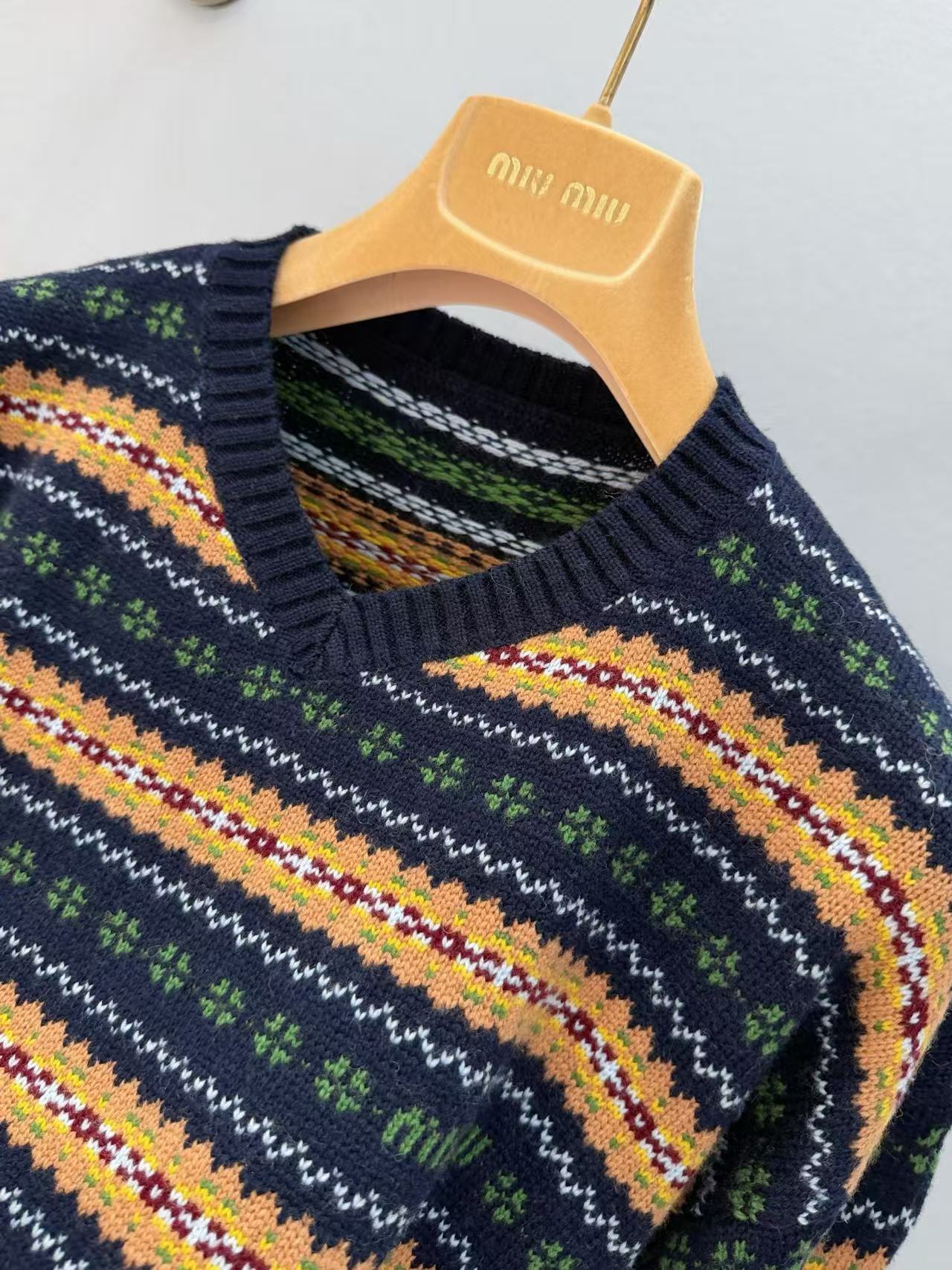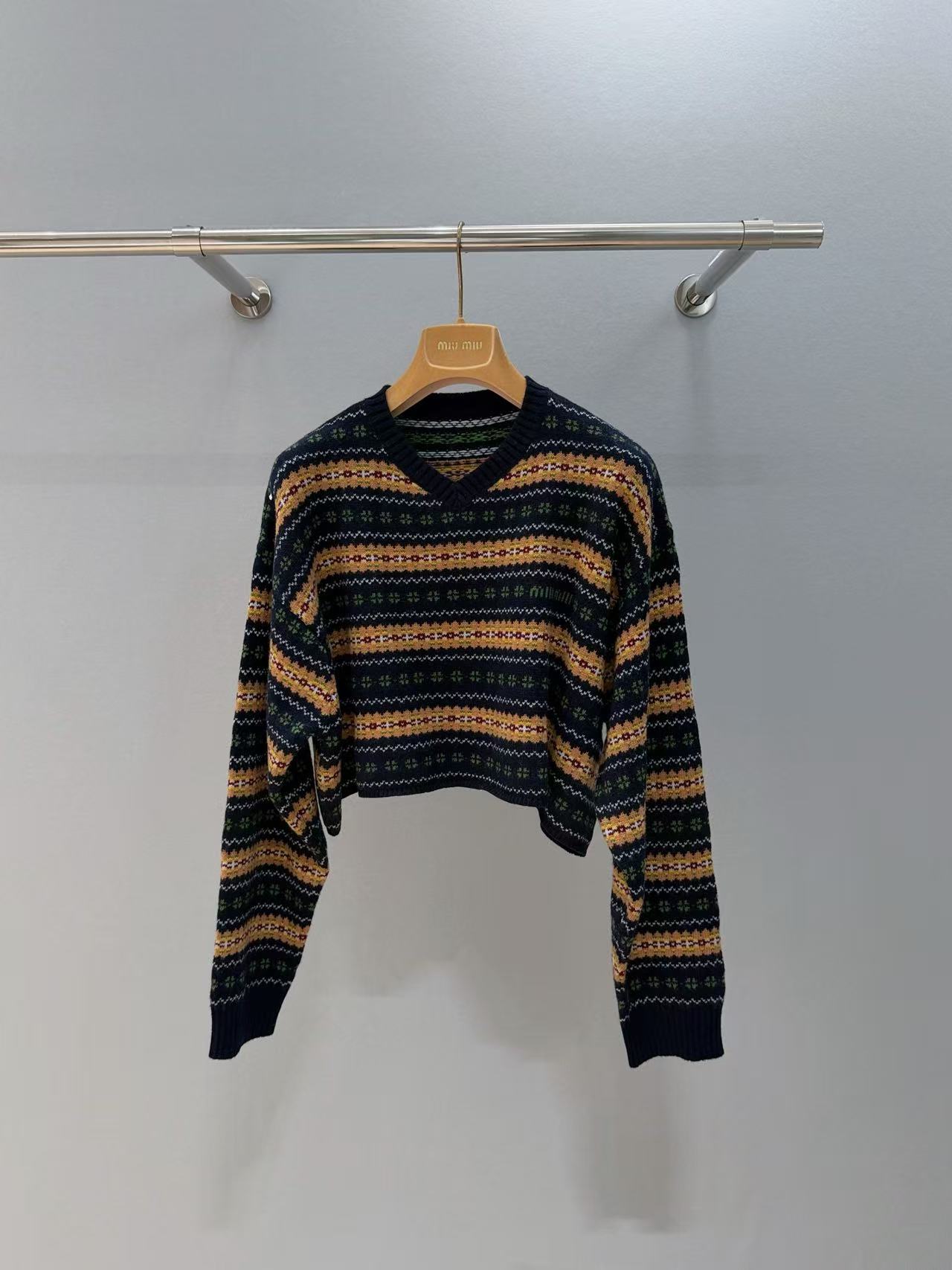 2025早秋 Miu家 蘇格蘭風羊毛 V 領短款毛衣