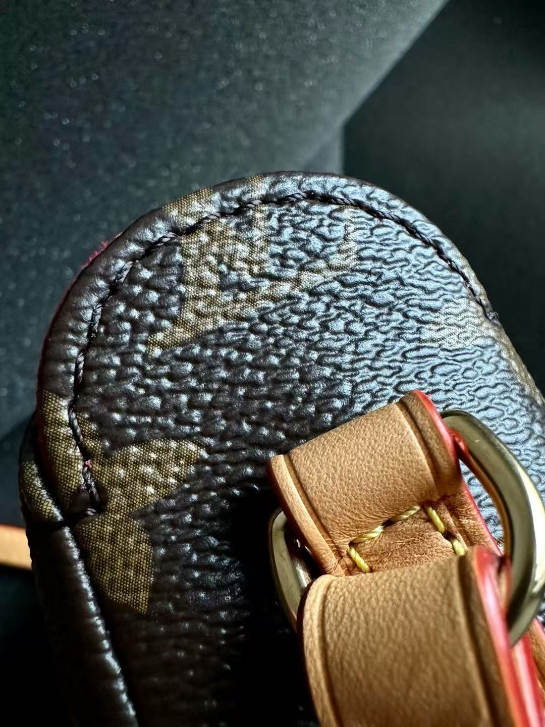 配皮使用原版全植鞣樹膏黃皮,這種皮料的魅力就在於能隨時間吸收油脂與水分,逐漸養成溫潤的蜜蠟色,這正是中古包迷戀的味道。相比之下,新款半植鞣雖然防水不變色,但少了那種「自己養出來」的成就感與靈魂。縫線選用德國進口亞曼莎菲線,膠水則是義大利進口水性白膠,環保、無毒、無味,與歐洲各大精品品牌一致。