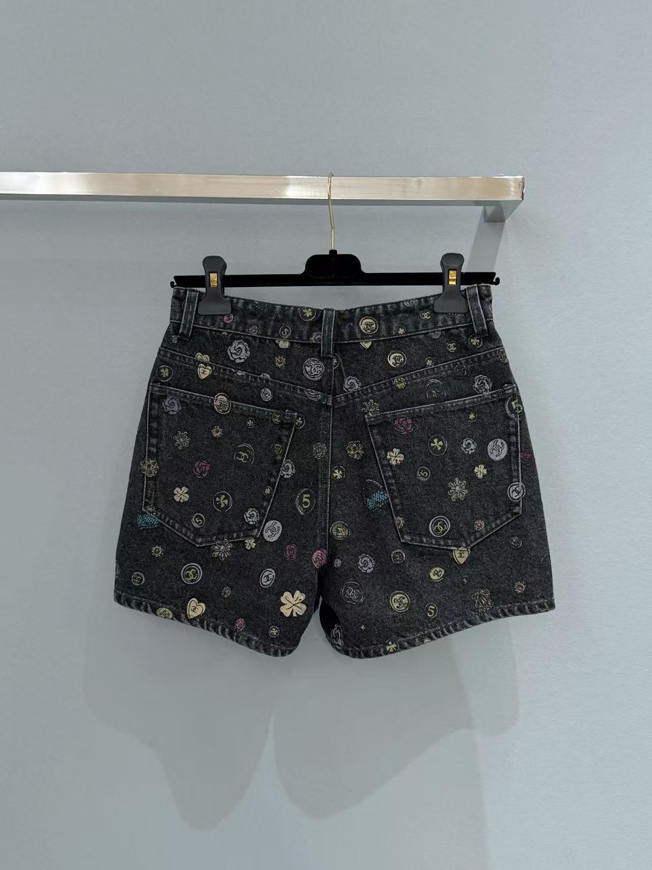 2025早春 C家 山茶花印製牛仔短褲