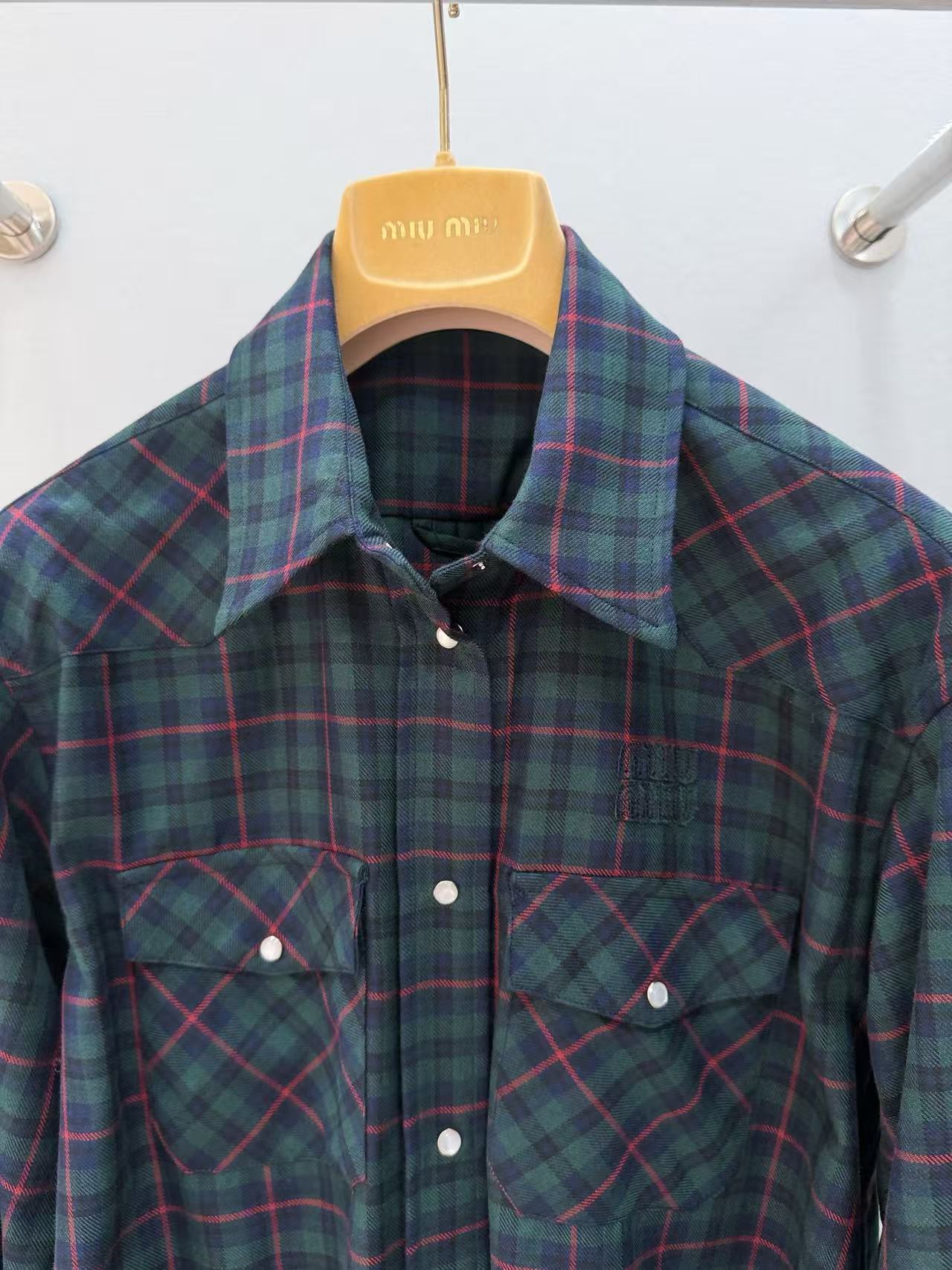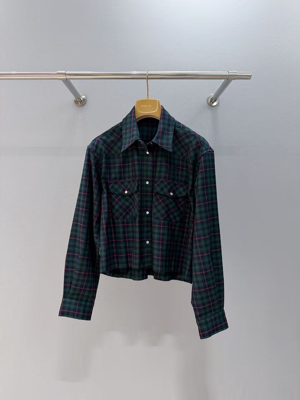 Miu家 復古格紋短版襯衫