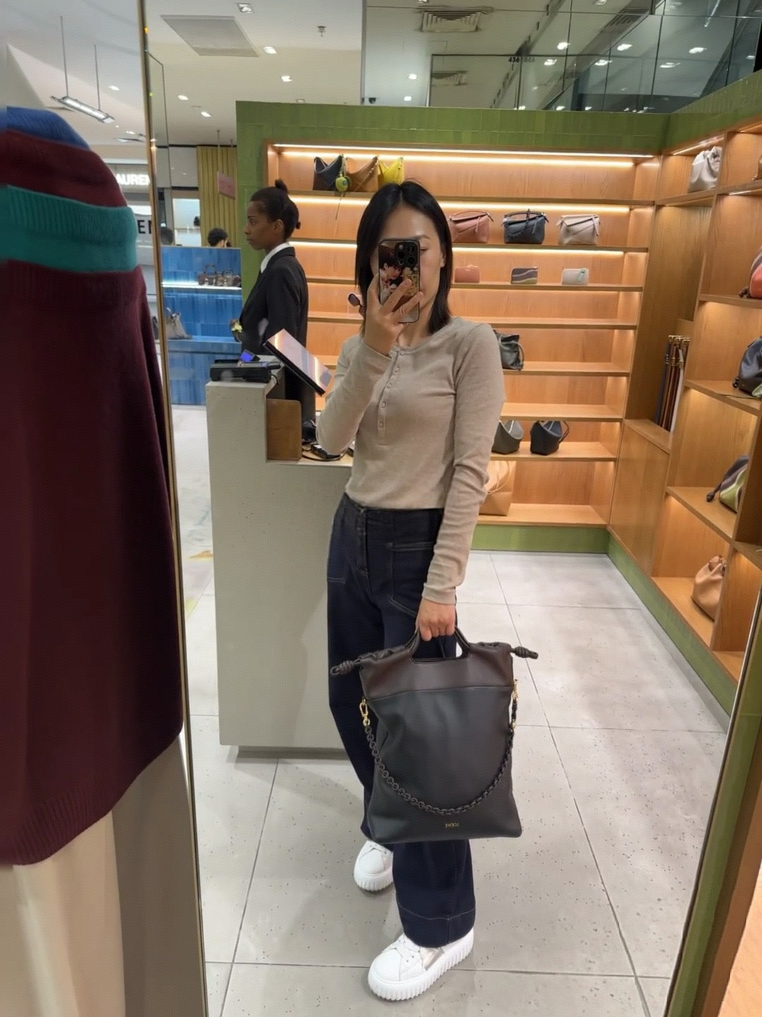 側邊搭配品牌標誌性的繩結細節,低調中帶點設計巧思,慵懶卻不隨便,完全是那種「看起來很會穿搭」的包款。