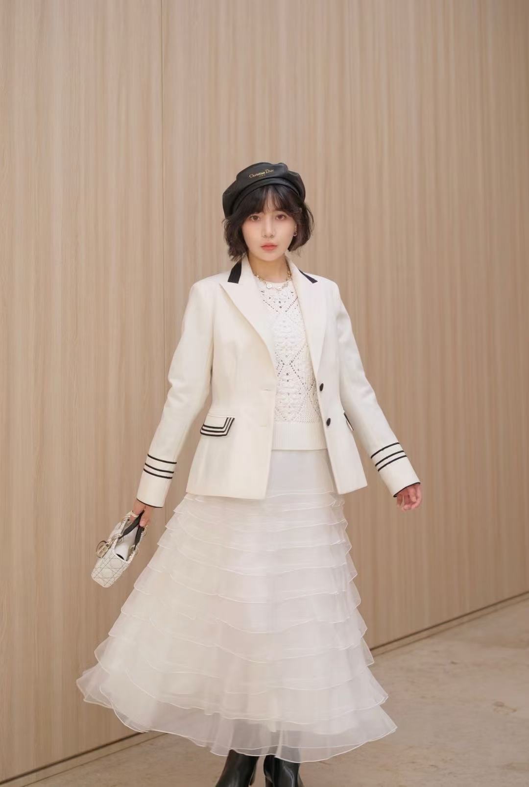 材質:外層採用優質羊毛混紡,溫暖柔軟且廓形挺括,質地細膩高级;內裡100%真絲材質,觸感如雲朵般輕盈親膚。
