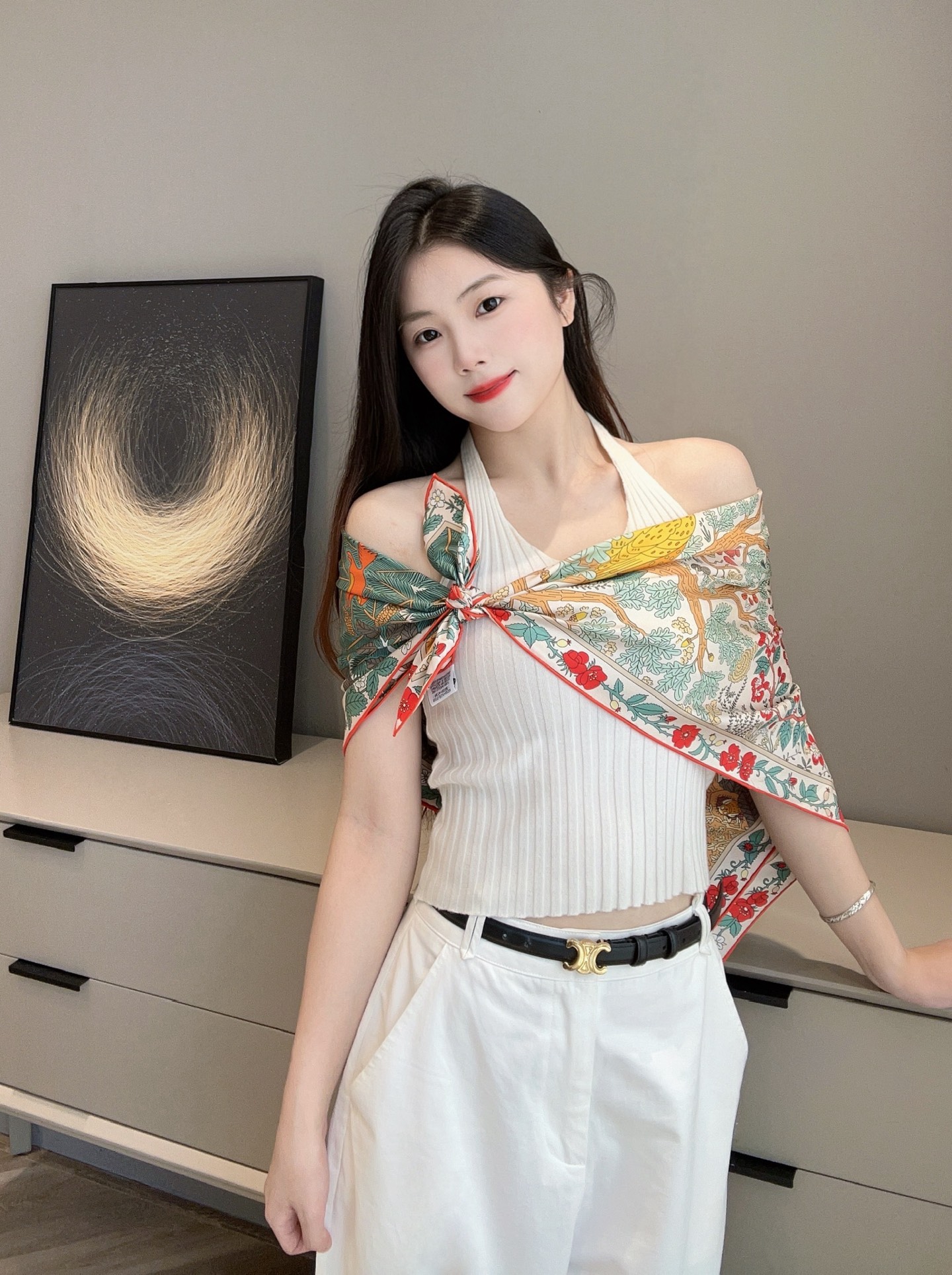 搭配簡單的白襯衫、針織上衣或風衣,就能成為整體造型的靈魂;即使全身穿搭極簡,只要多了這一條,立刻多出文化底蘊與藝術氣息。