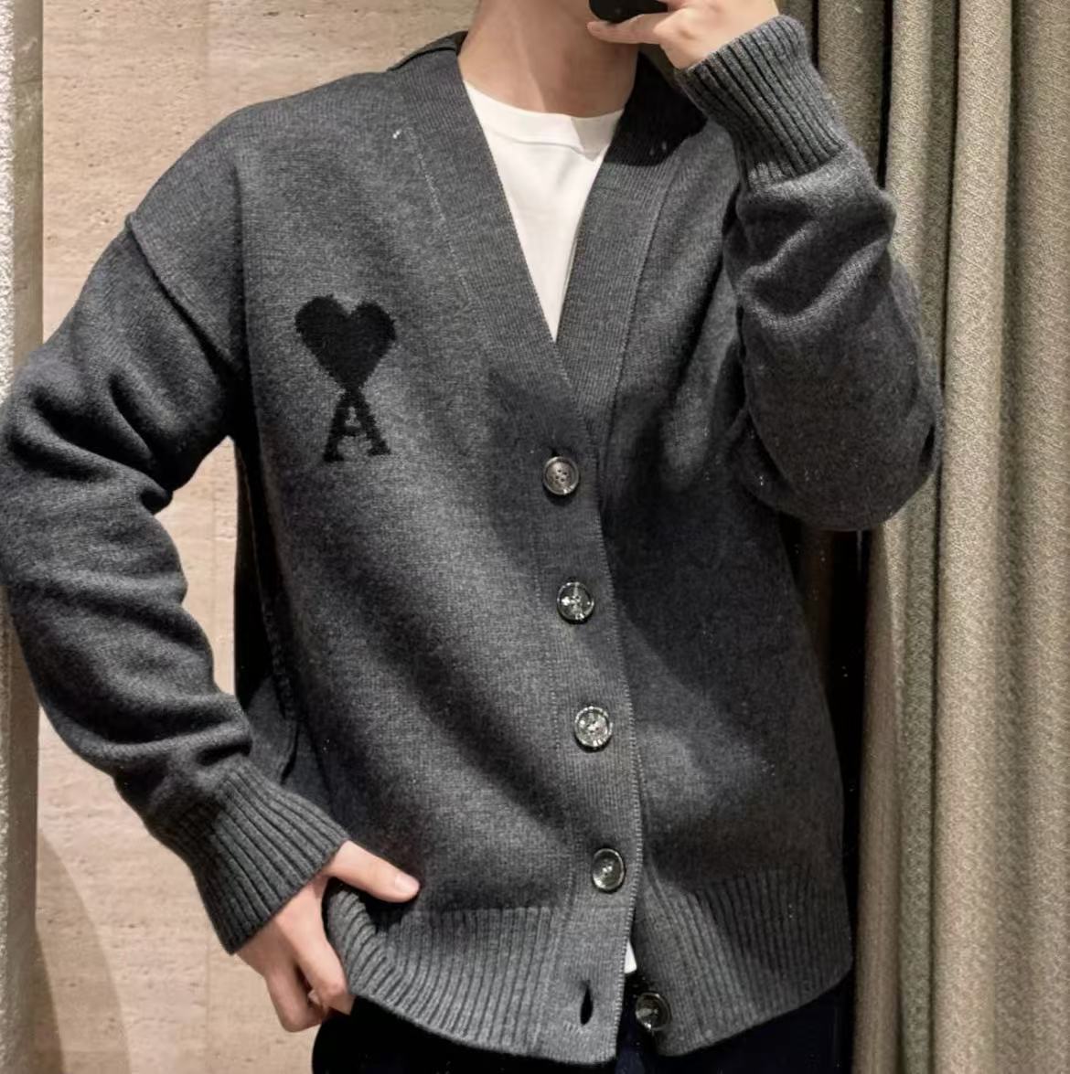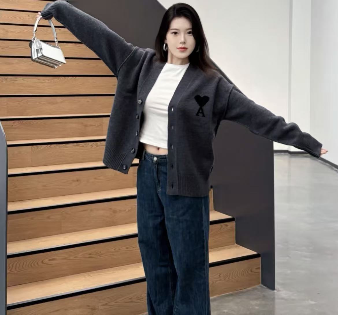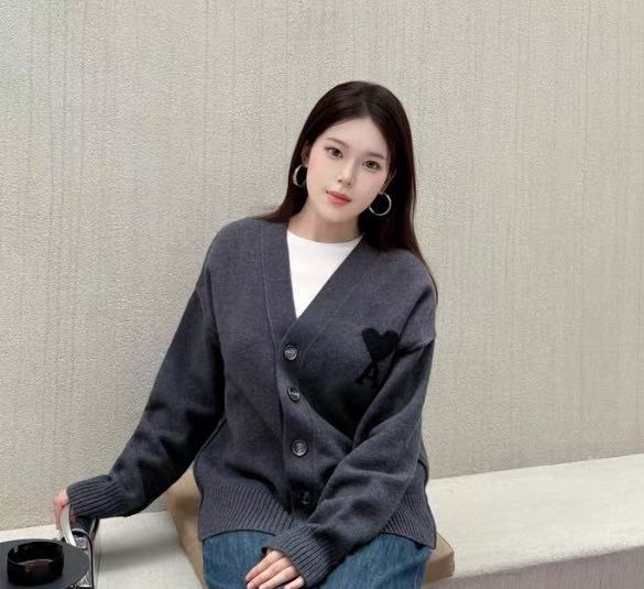 2025早秋新品 Ami家 黑色大愛心羊毛開衫