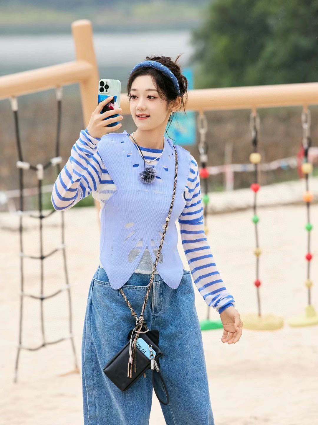 那種「不經意的時髦」,輕鬆就能擁有。清爽藍調搭配閃爍亮片,讓夏日造型更有活力,隨便搭都超有氣勢又不失可愛。
