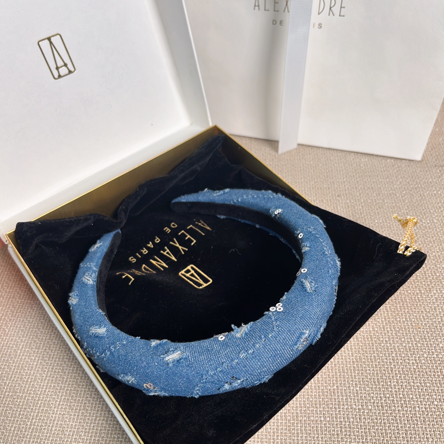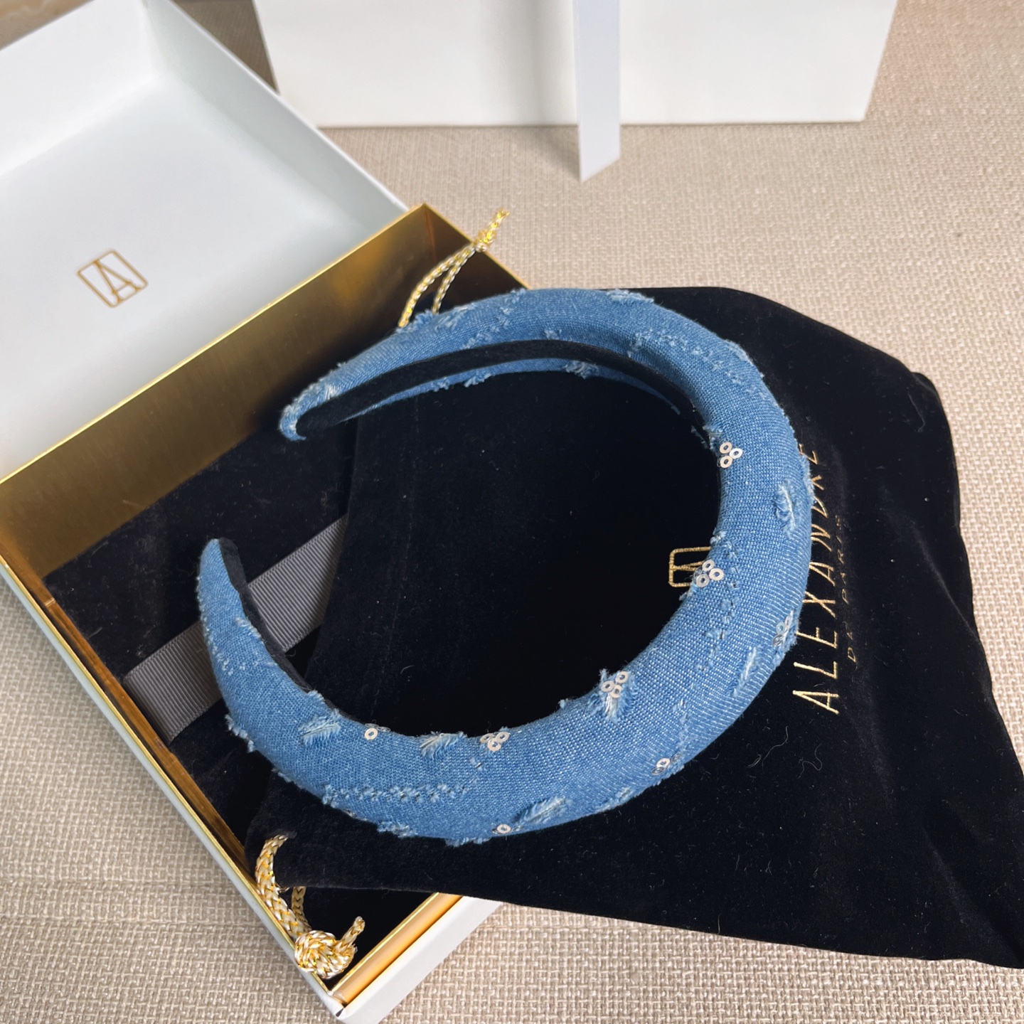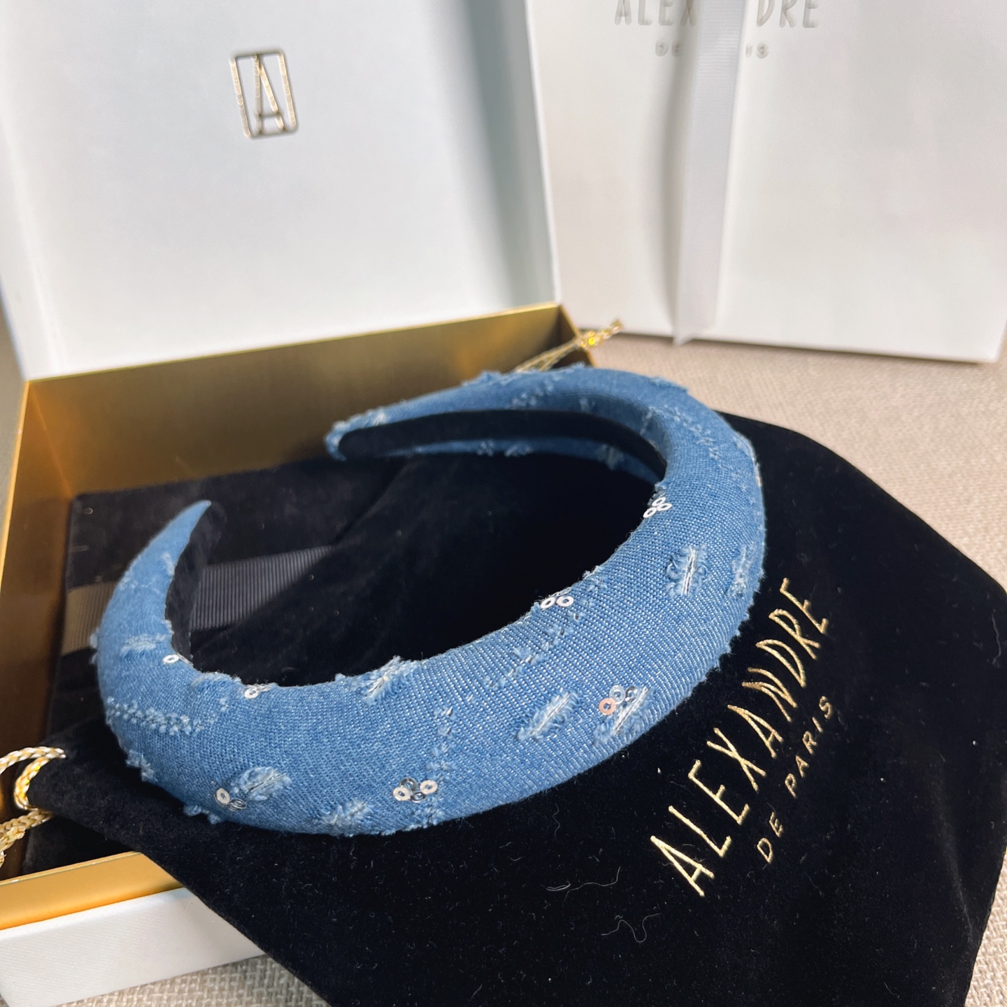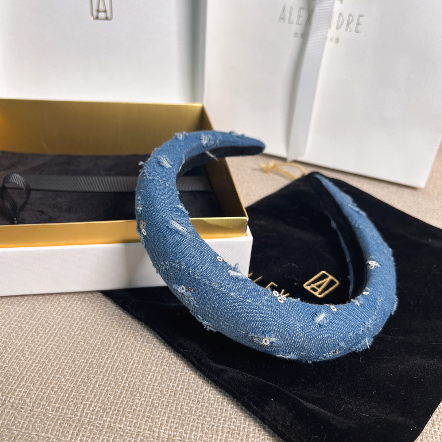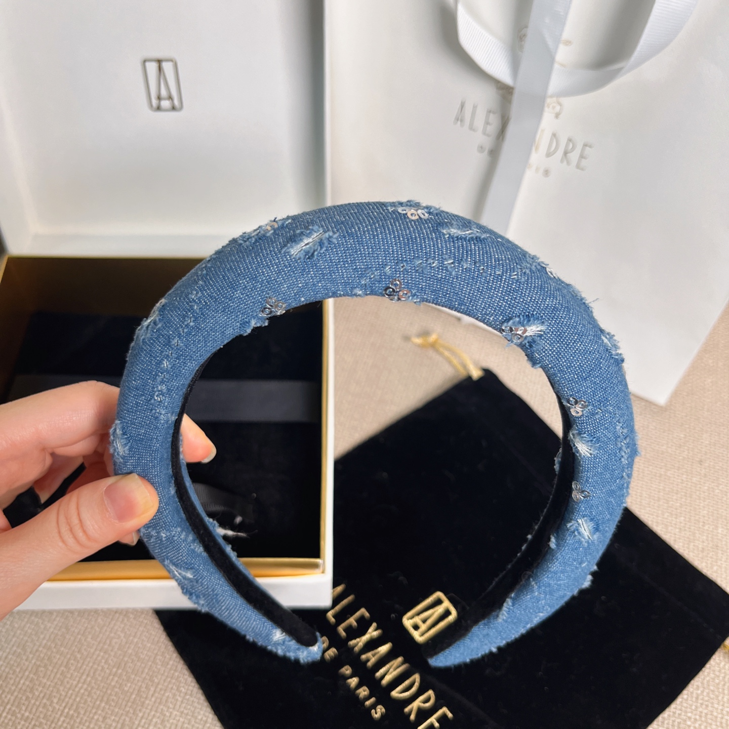 2025秋冬新品 AW家 亮片磨破牛仔髮箍