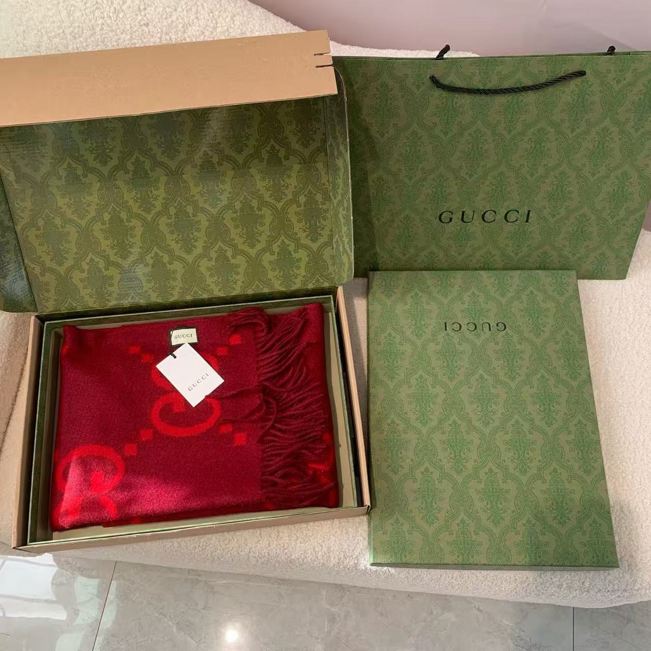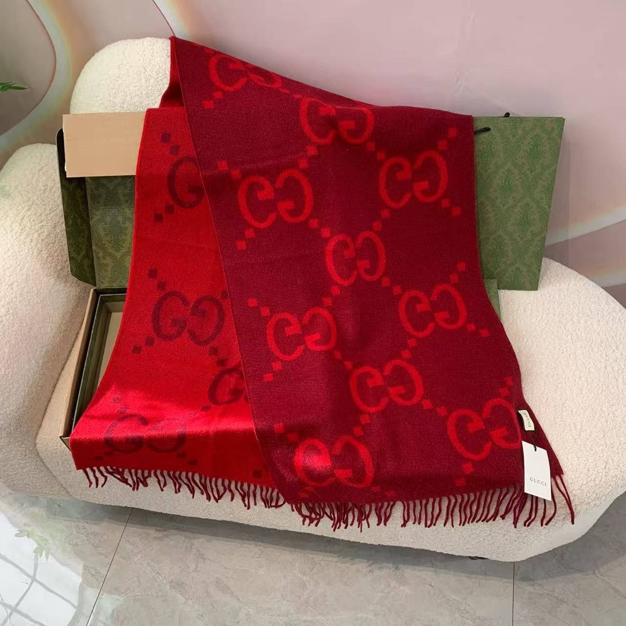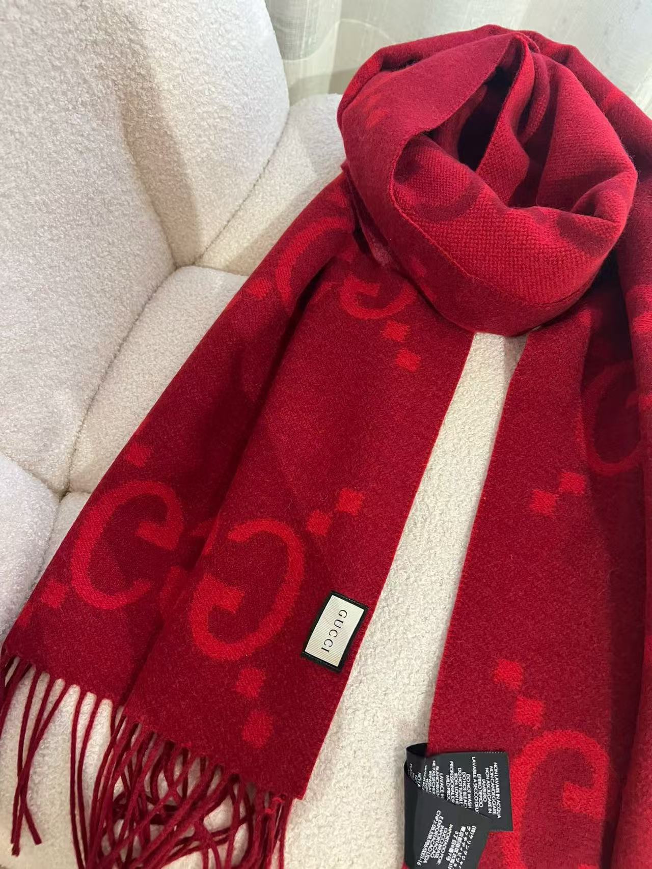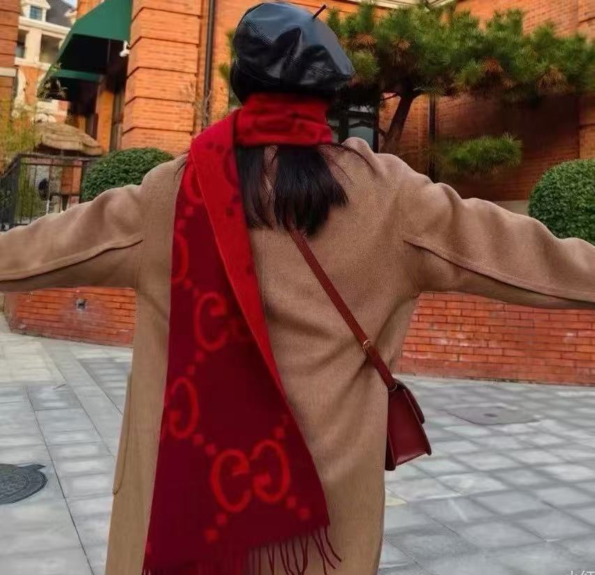 最瘋狂的當然是那「雙面大G提花」+「45×200cm巨型尺寸」!披在肩上像穿了件高級羊絨披肩,貴氣直接從脖子噴出來~