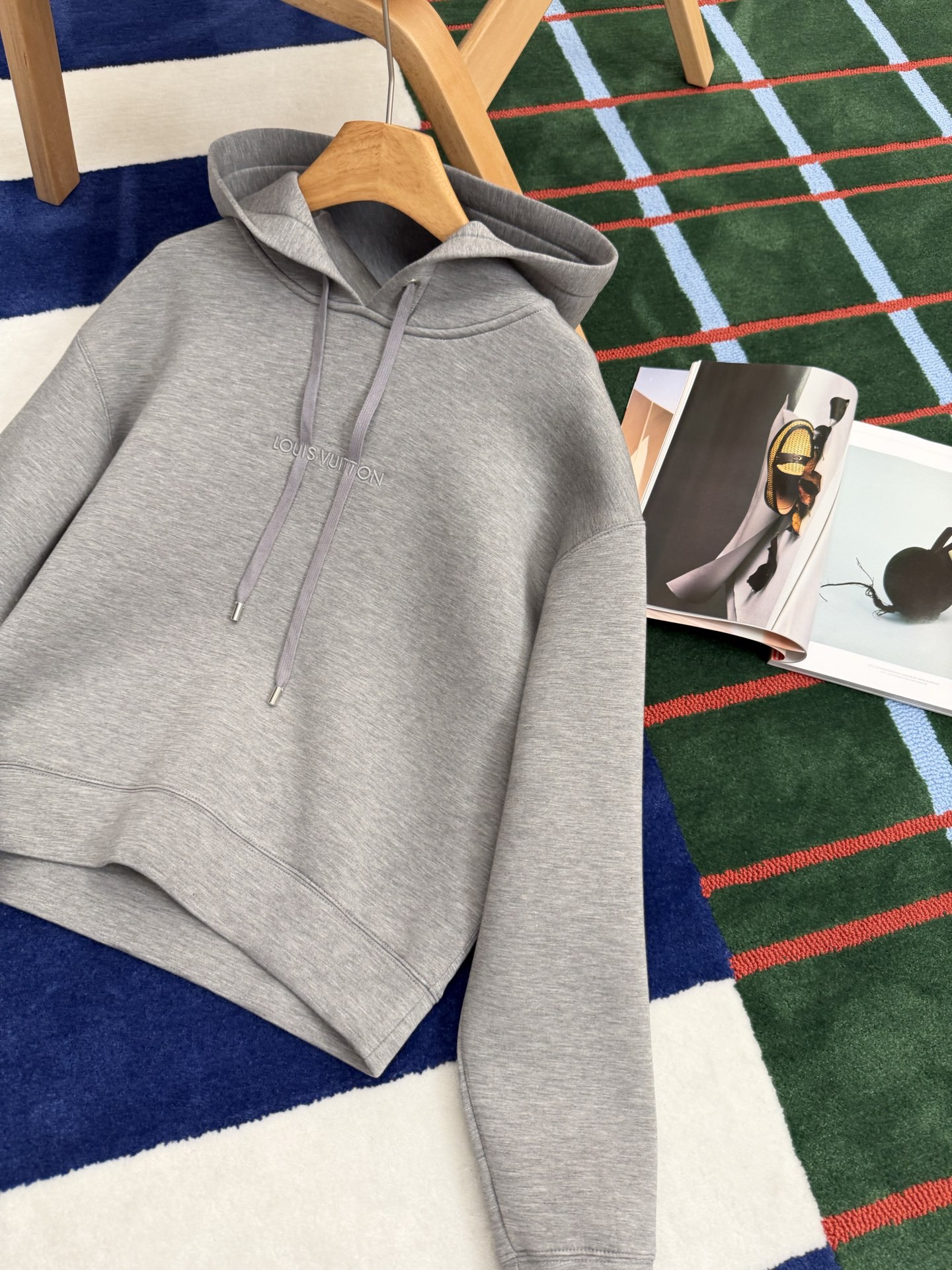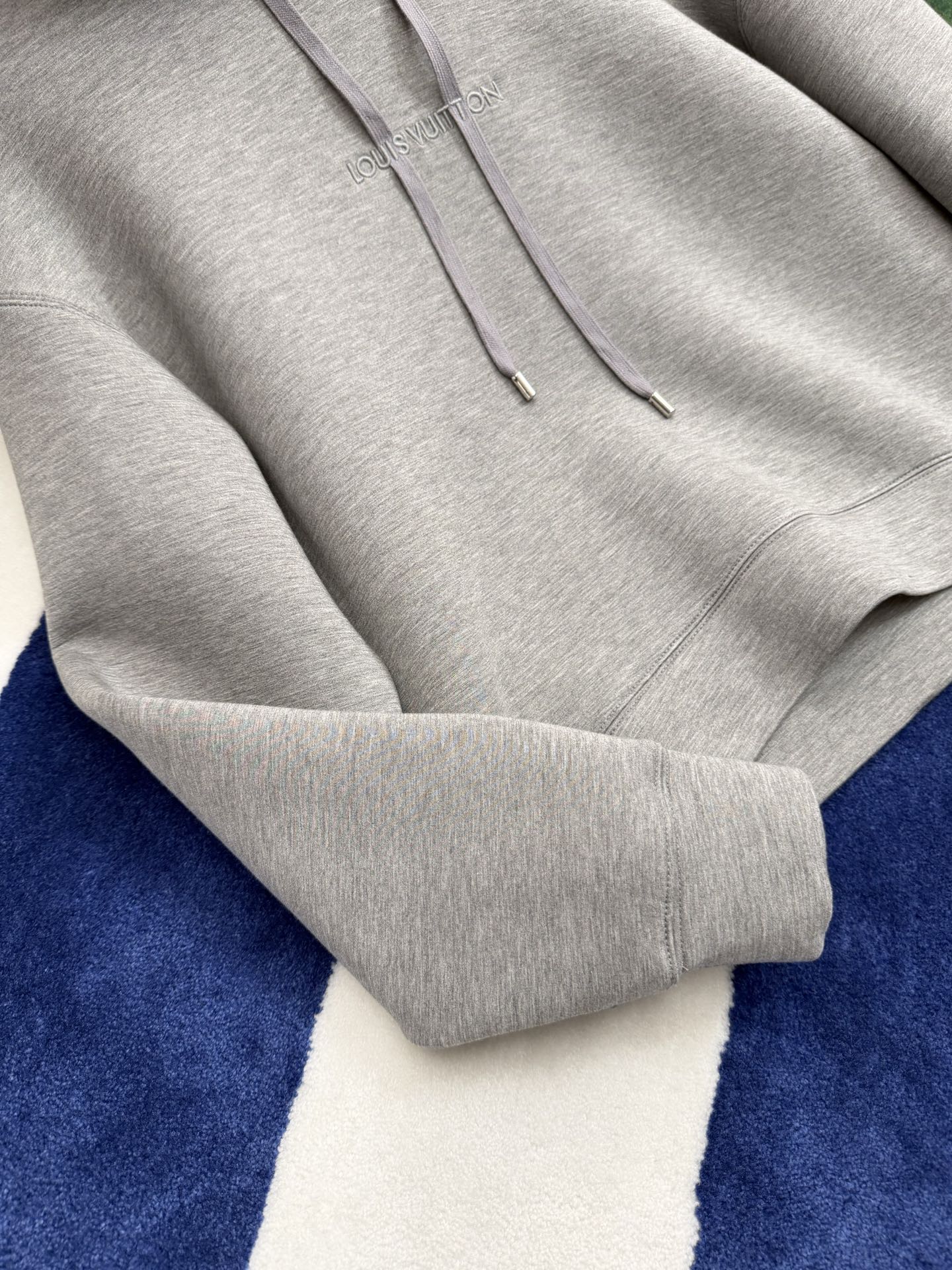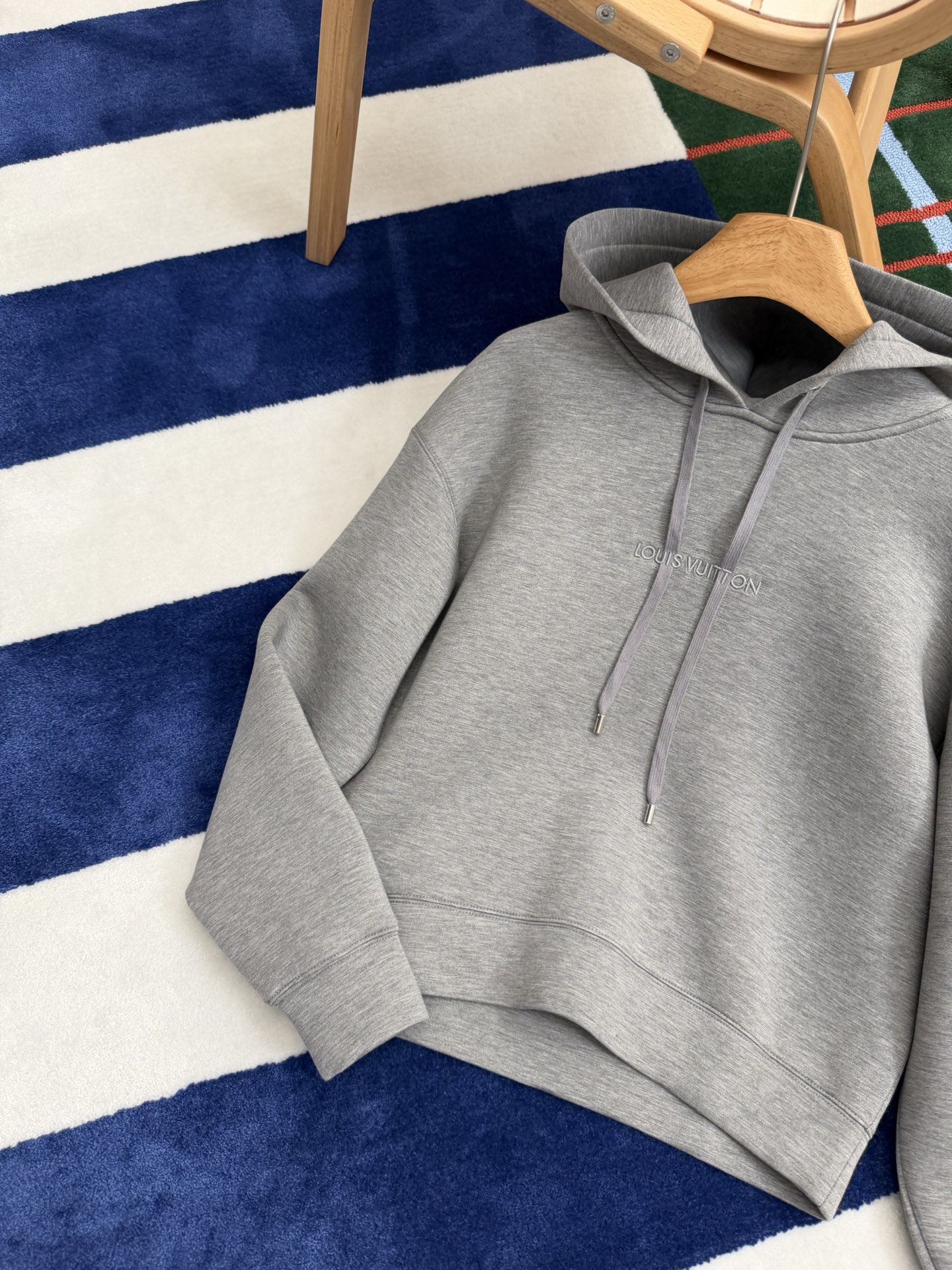 胸前以同色系刺繡點綴,低調卻很有層次感,刺繡一路延伸到抽繩設計,視覺上自然拉出線條感,讓整件帽T看起來更有立體度。