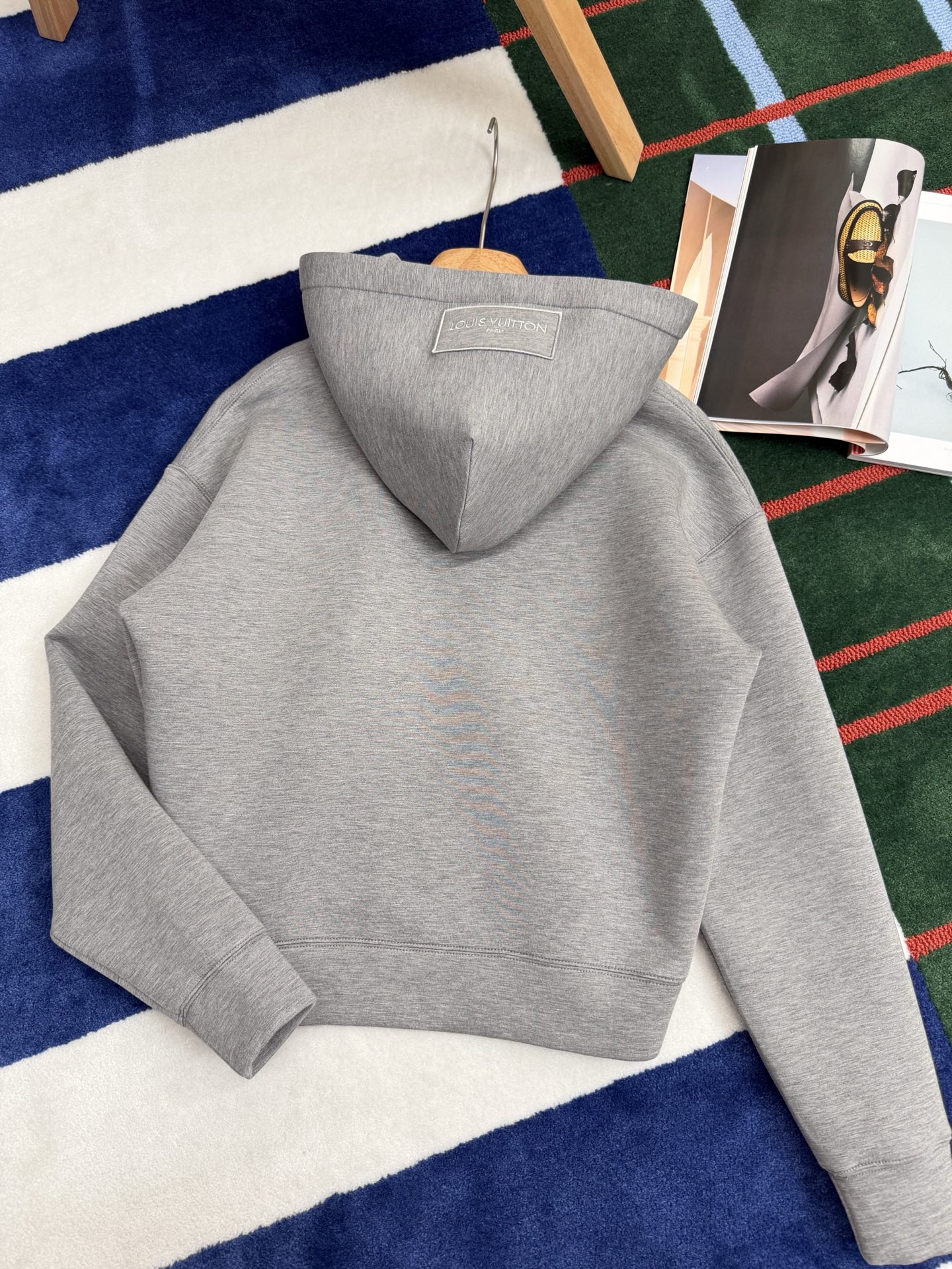 寬大的連帽上加入 LOGO 標籤,為整體風格再加一點品牌識別,簡約但不無聊。