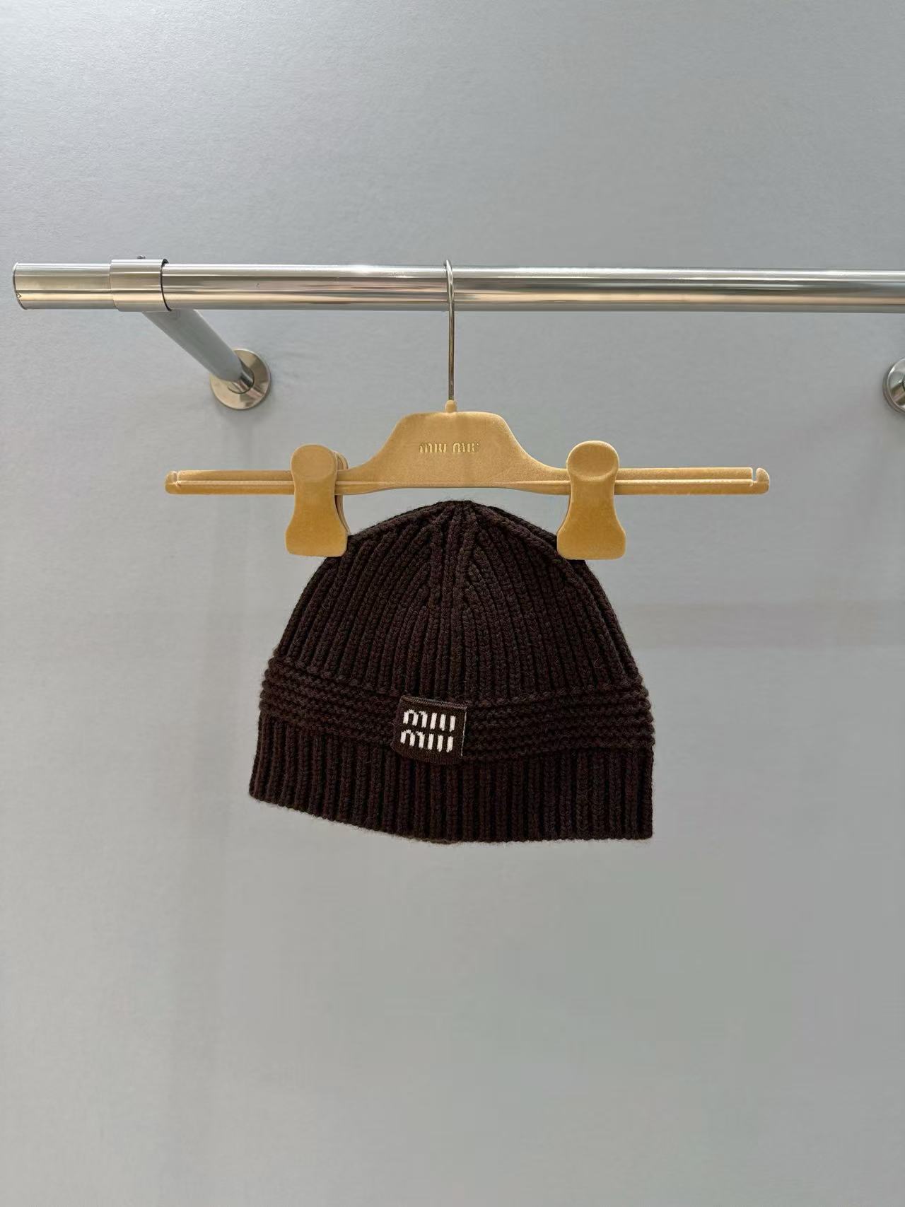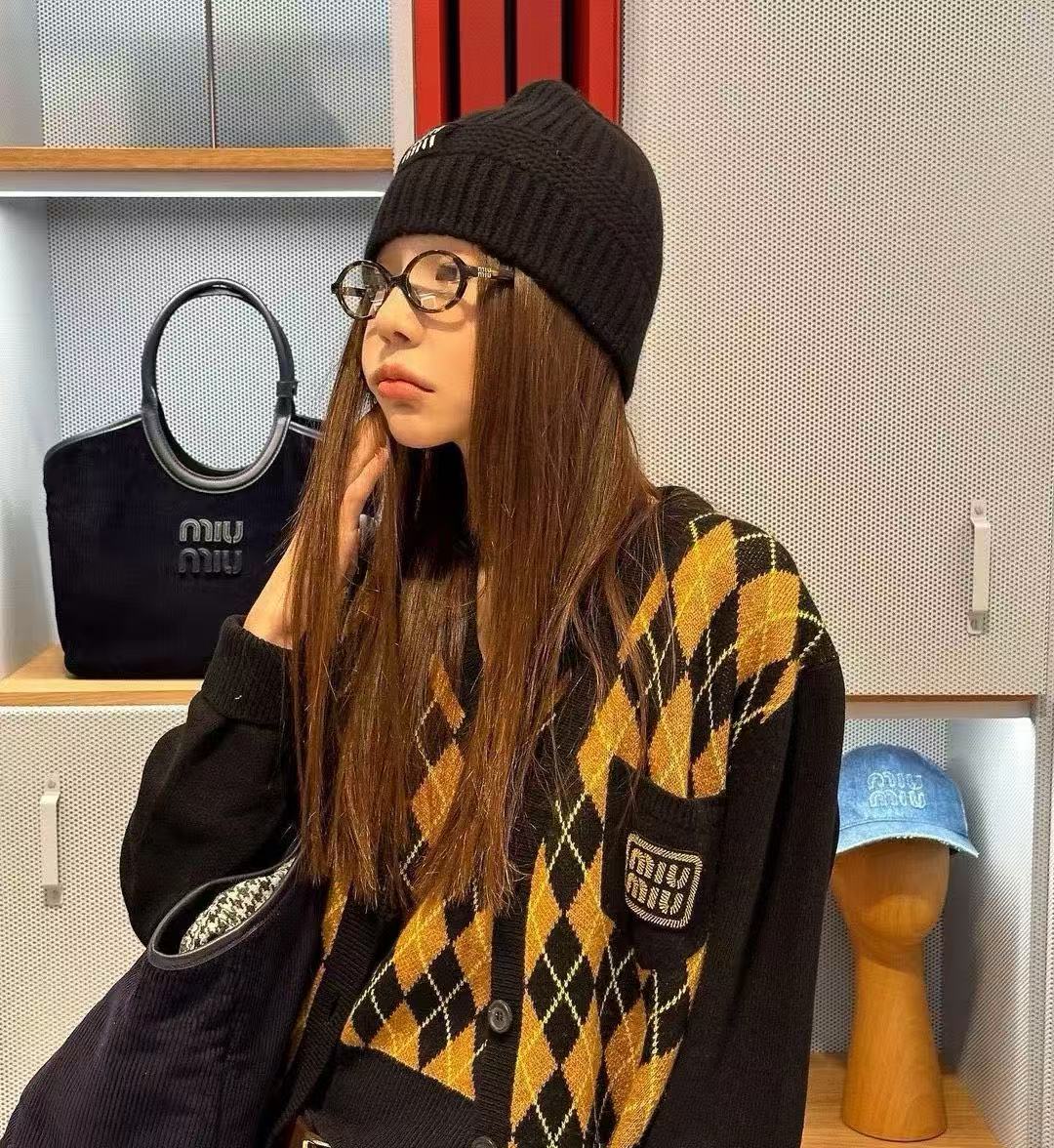 2025早秋 MIU家 徽標羊毛混紡針織帽| 入冬必備