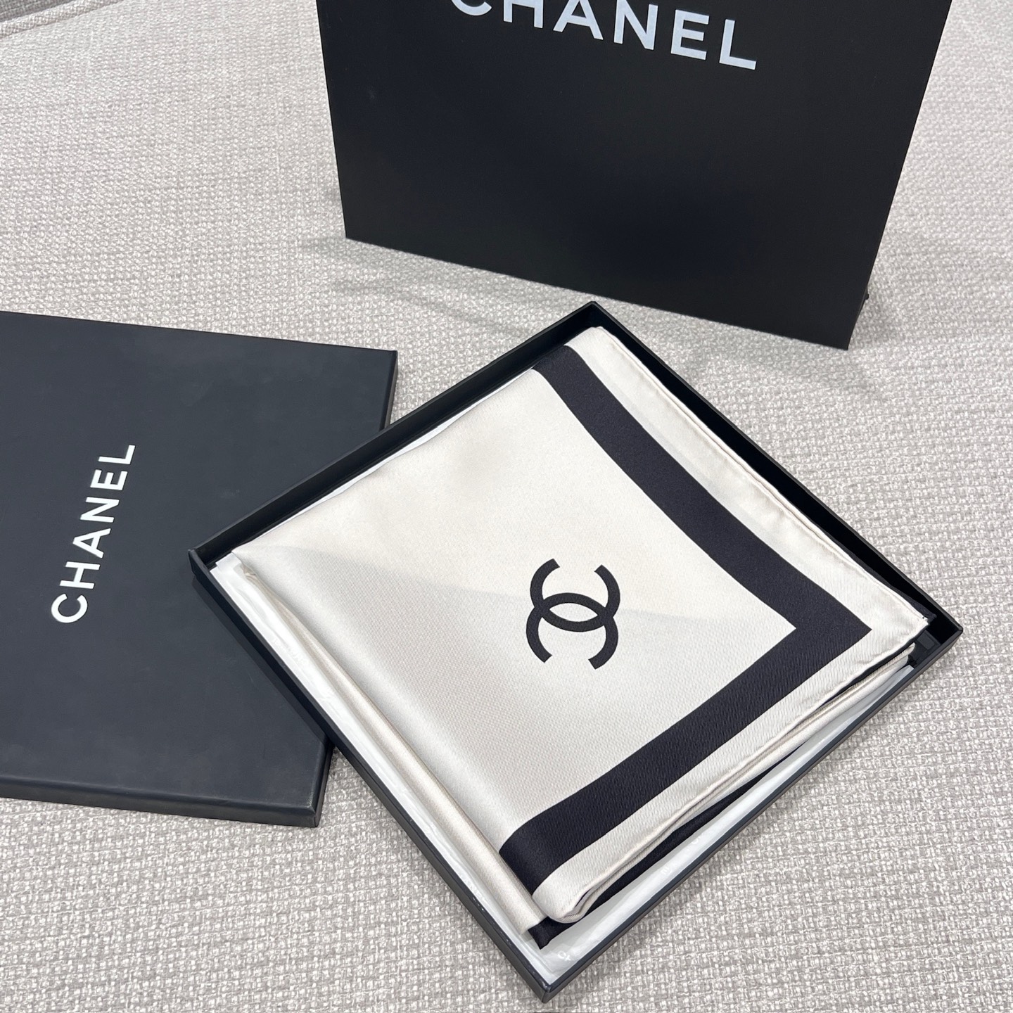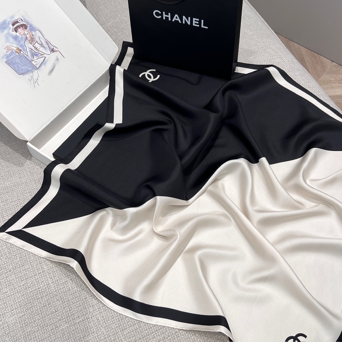 2026春夏新品 C家 對稱黑白絲巾