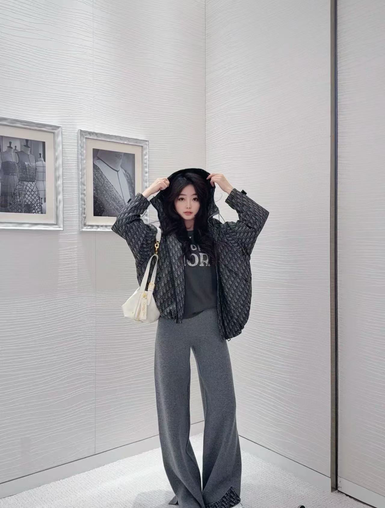 2025早秋 D家 滿版老花連帽拉鏈外套