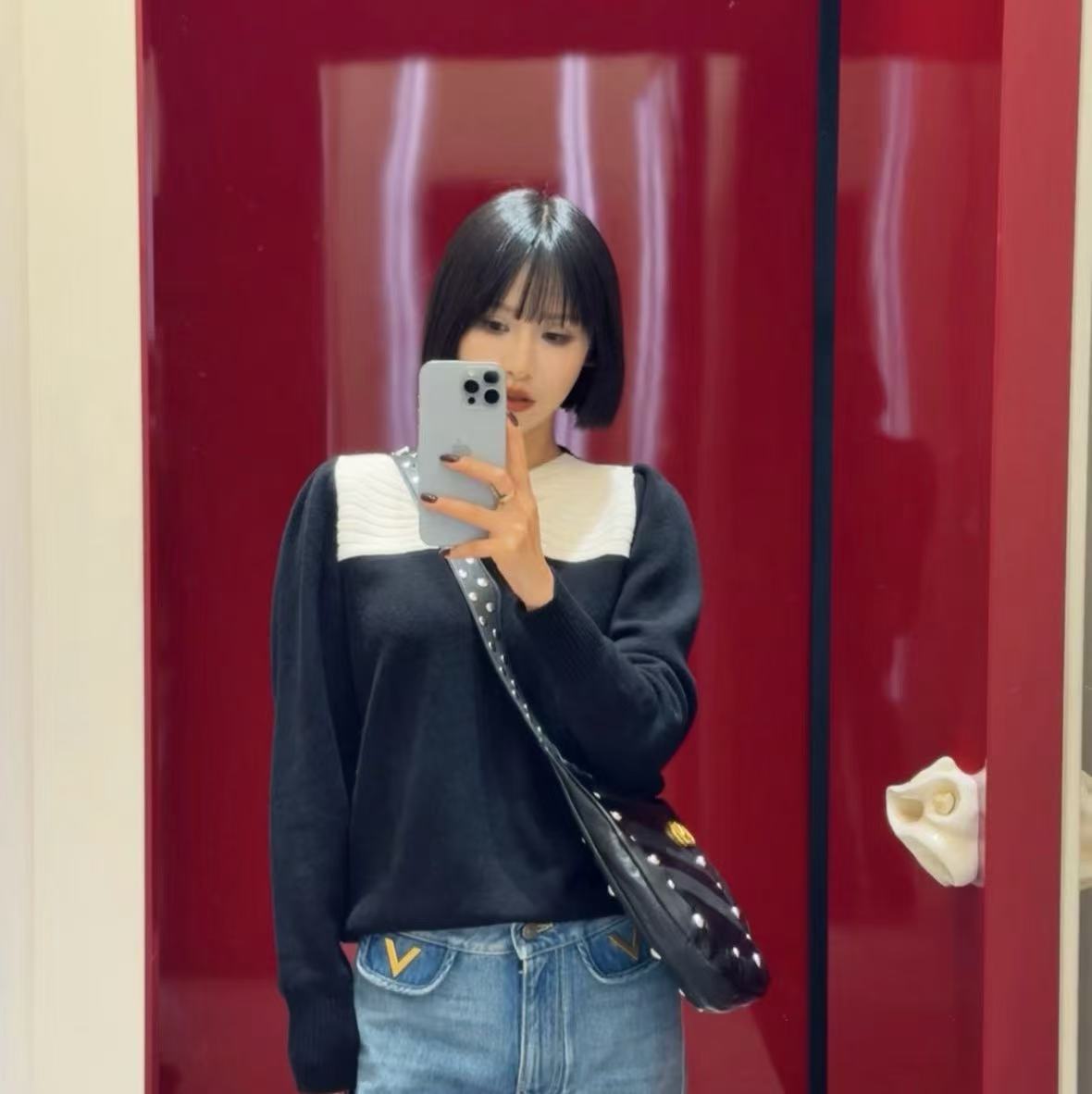 重點是那顆超級巨大的法式立體蝴蝶結,黑白拼色經典到不行,既優雅又帶滿滿少女心,視覺上直接幫你拉長比例!