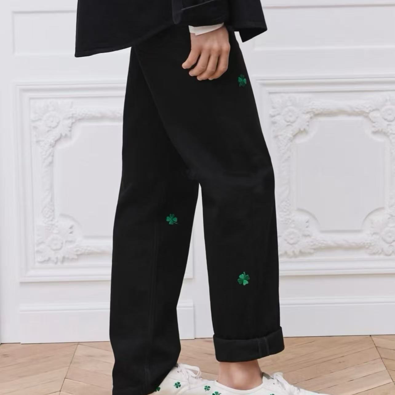 2026早春新品 D家 四葉草刺繡牛仔褲
