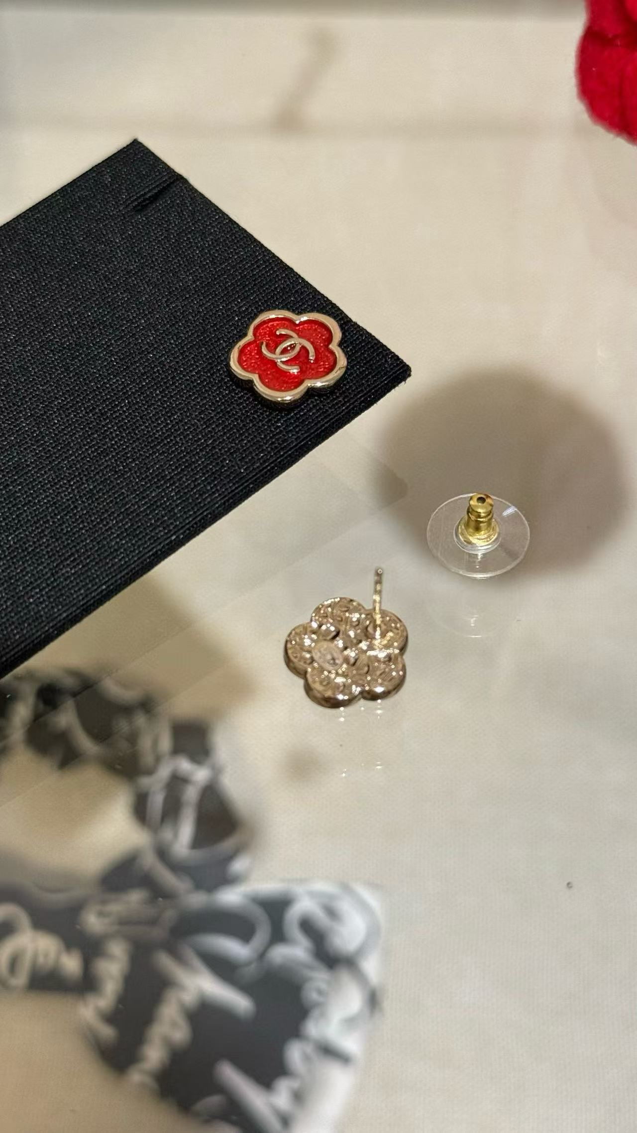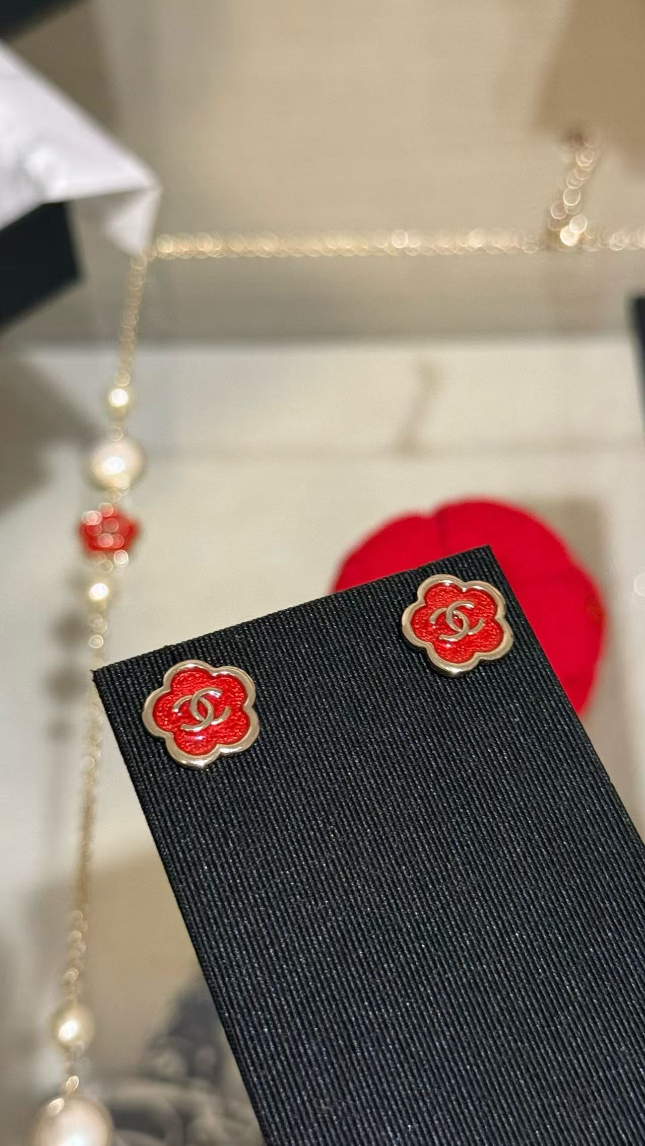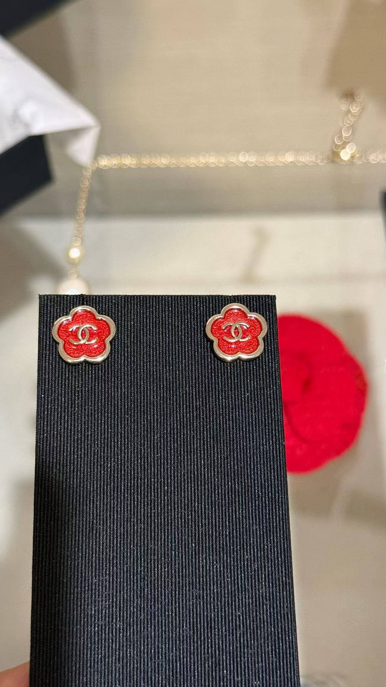 2025早秋 C家 红色珐琅滴釉山茶花耳環