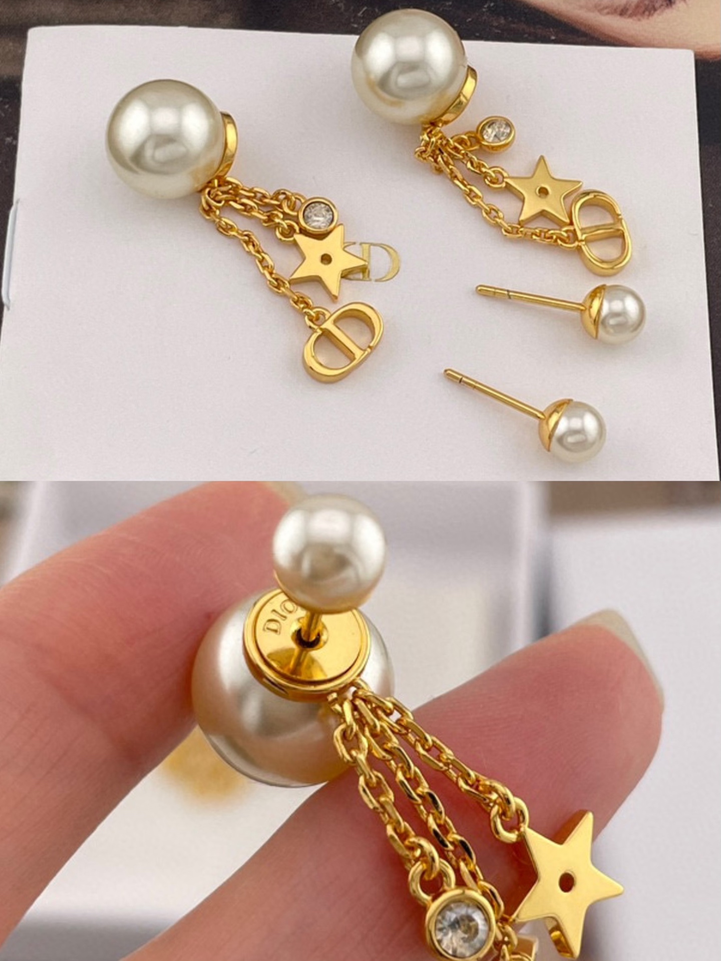 2025秋冬新品 D家 星鑽CD流蘇雙珠耳環