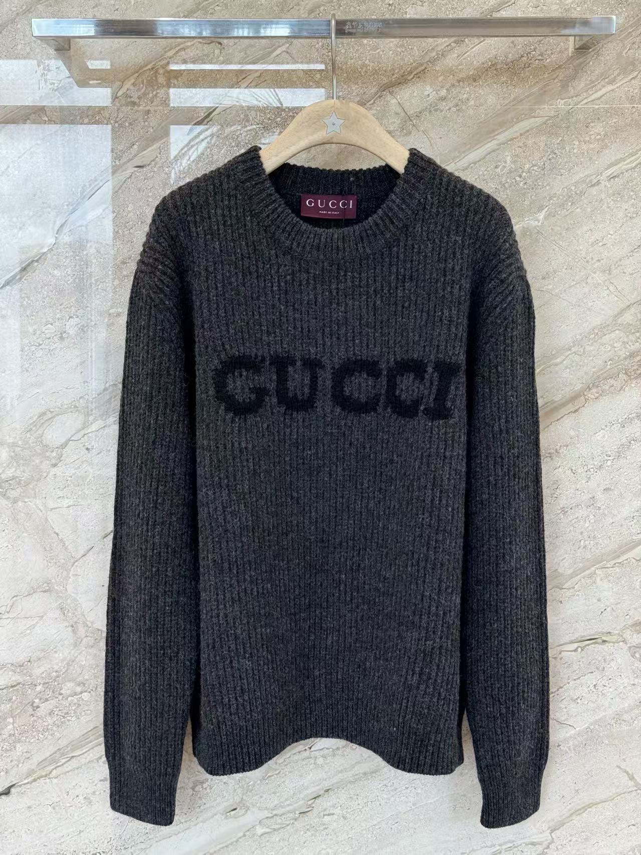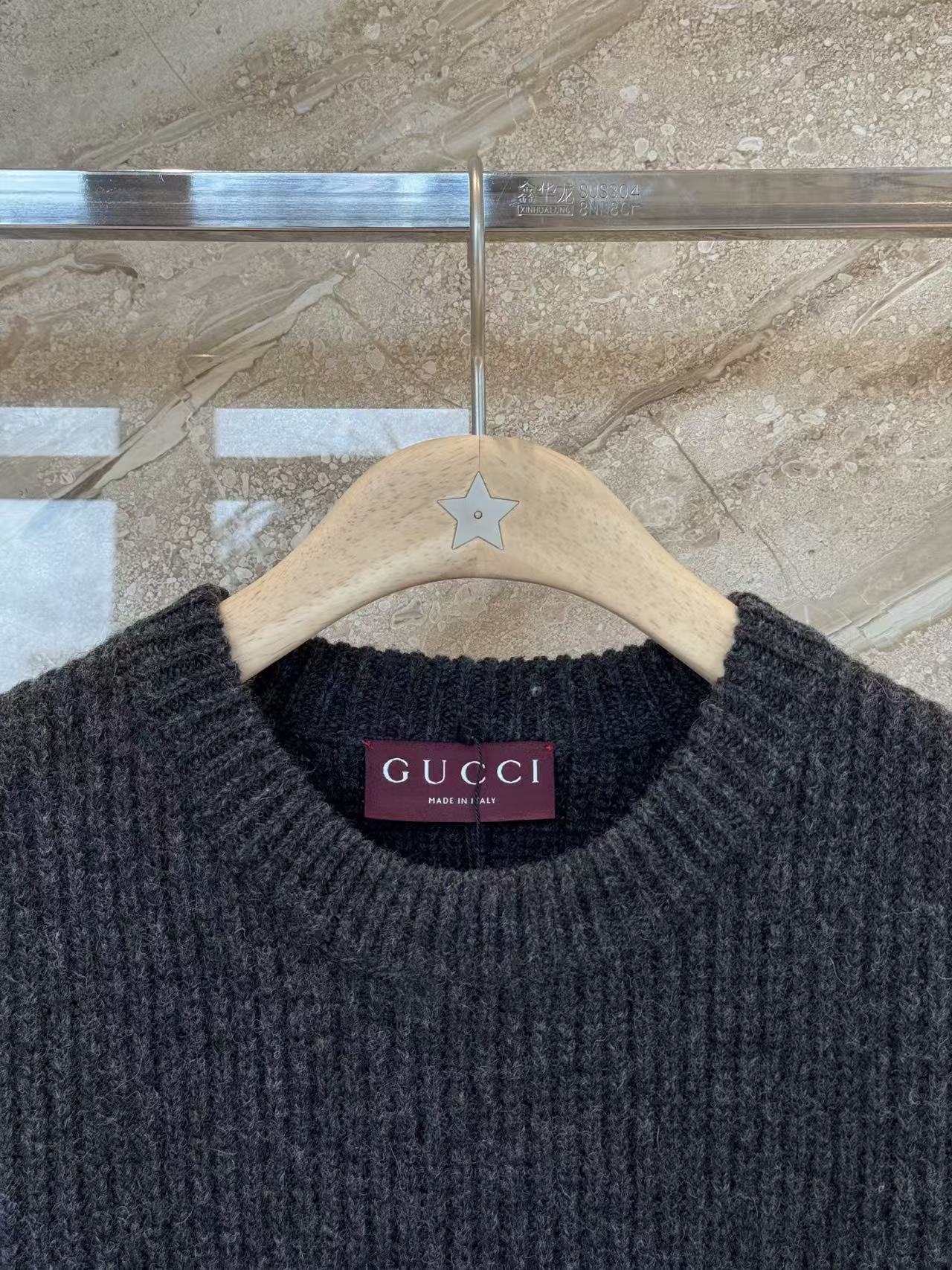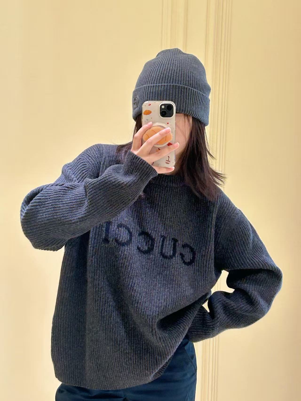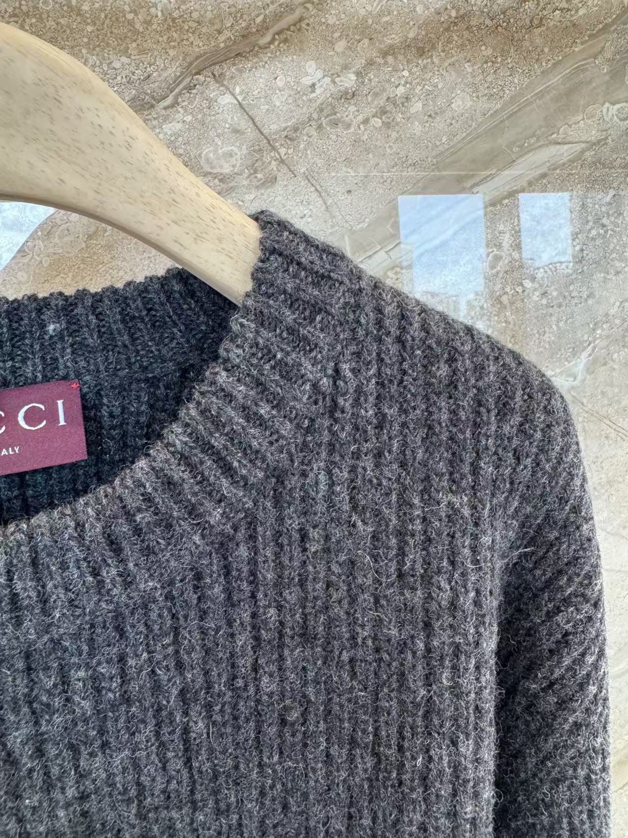 宋威龍同款深灰色粗針織,一眼看過去低調沉穩,胸前黑色GG字母提花超有辨識度,隨性中帶點貴氣,低調好看~