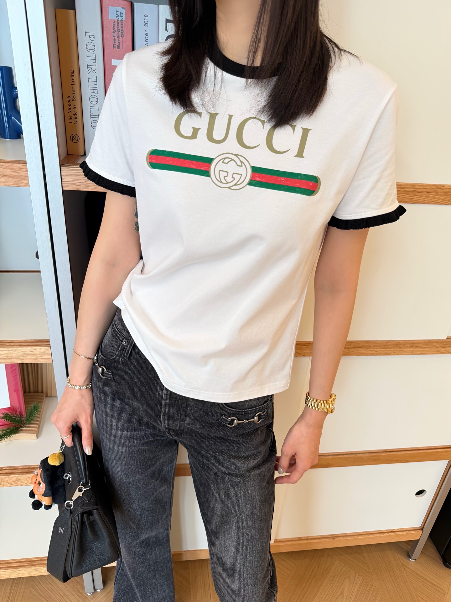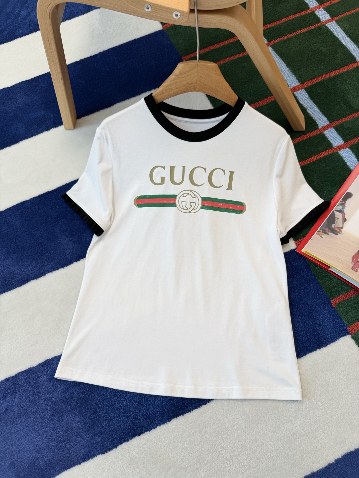 2026春夏新品 G家 紅綠織帶雙G印花短袖